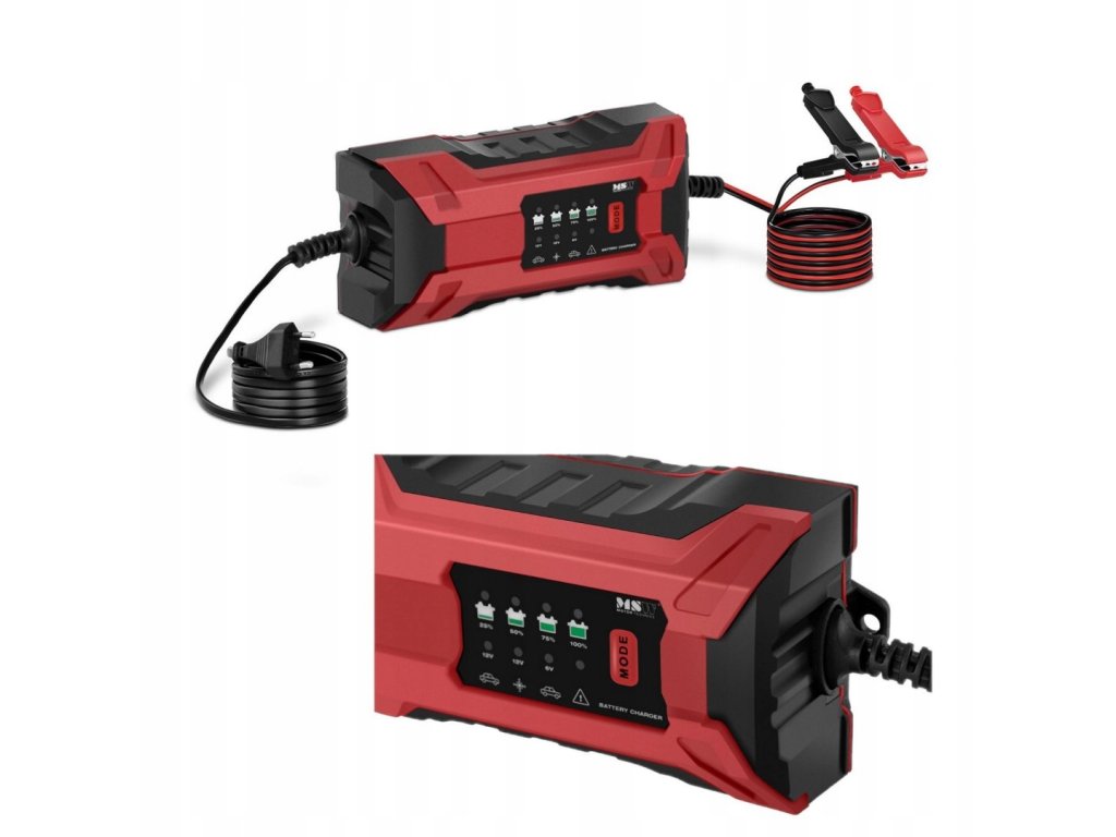 Uniwersalny prostownik samochodowy marki MSW został przystosowany do ładowania wszystkich rodzajów akumulatorów kwasowo-ołowiowych, AGM i żelowych. Wystarczy podłączyć przewody z zaciskami do baterii, a następnie urządzenie do prądu. Czytelny panel kontrolny wyposażono w kolorowe diody LED, które poinformują o zakończeniu pracy lub ewentualnych błędach.