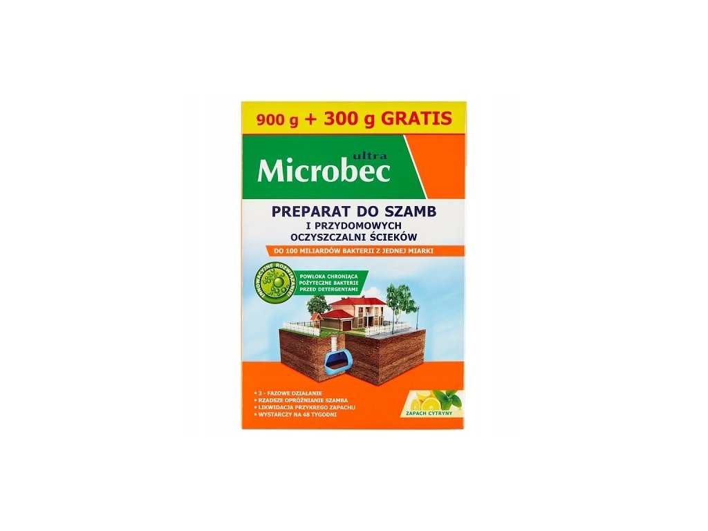 ✅ Mikrobiologický enzýmový prípravok najnovšej generácie určený na biodegradáciu obsahu septiku. Systematické používanie Microbecu znižuje frekvenciu vyprázdňovania septiku, podporuje chod domácich čističiek odpadových vôd, odstraňuje nepríjemný zápach a upcháva sanitárny inštalačný systém. Microbec využíva inovatívne, patentované riešenia spočívajúce v uzavretí aktívnych baktérií do mikroguľôčok obklopených špeciálnou ochrannou náter. Vďaka tomu mikroorganizmy v nich obsiahnuté nezahynú pri kontakte so silnými chemikáliami a prípravok zostáva účinný aj pri použití tradičných čistiacich prostriedkov Pôsobenie prípravku: Microbec obsahuje špecializované bakteriálne kultúry a enzýmy, ktoré urýchľujú prirodzený proces rozkladu organické zvyšky vrátane: nečistoty, tuky, zvyšky rastlín, papier.  Baktérie prítomné v prípravku sa veľmi rýchlo množia a už hodinu po použití ich počet v septiku dosahuje až niekoľko stoviek miliárd. Produkt funguje v troch fázach: zabezpečuje rýchlu a efektívnu separáciu škodlivín, ktoré sú skvapalnené a následne enzymaticky rozložené na úplne bezpečné a ekologické jednoduché zlúčeniny a vodu. To umožňuje vyčistiť septik od nahromadených usadenín a upchávok, znižuje frekvenciu vyprázdňovania nádrže a zabezpečuje vysokú účinnosť čistiarne.