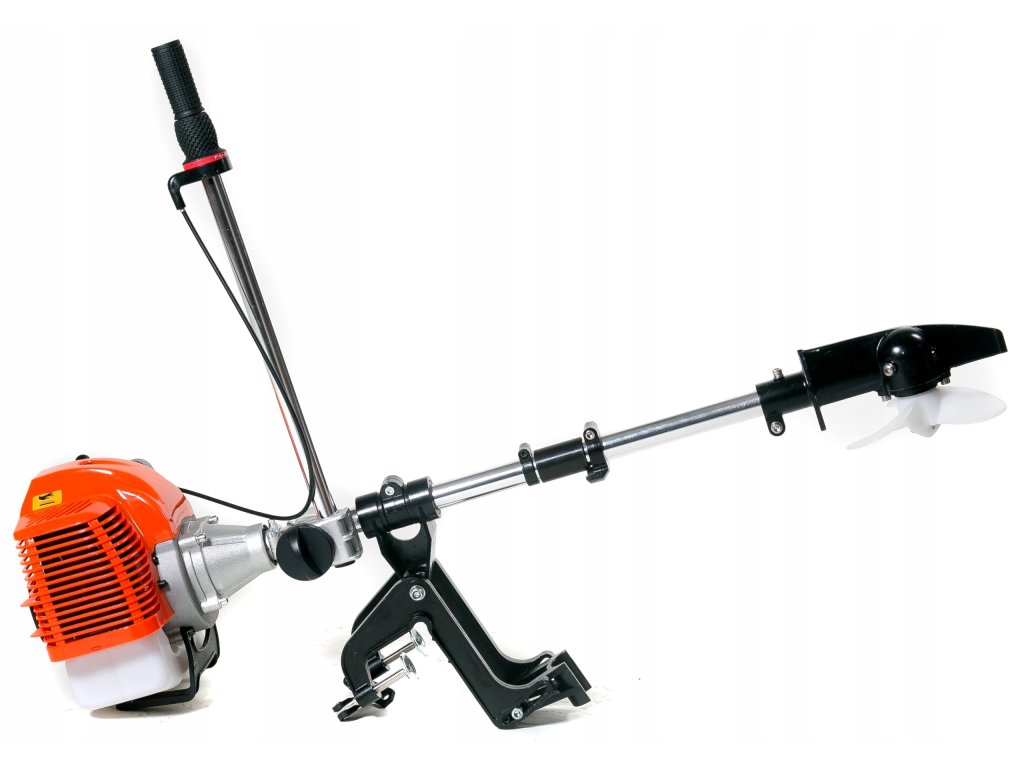 Oferujemy Państwu nowy 2-suwowy zaburtowy silnik spalinowy niemieckiej firmy GERMAN o mocy 5,8 KM. Jego kompaktowa budowa zapewnia łatwe przenoszenie i łatwość montażu na łodzi lub pontonie. Brak osłon silnika to bardzo praktyczne rozwiązanie pozwalające na łatwą kontrolę podzespołów.. Prosta konstrukcja pozostawiła tylko niezbędne elementy co pozytywnie wpływa na bezawaryjność. Chłodzenie powietrzem wyeliminowało problemy z wirnikami pompy wody i przegrzewaniem. Napęd jest przenoszony przez skrzynię biegów z położeniami: przód - bieg jałowy - wsteczny. Napęd jest przenoszony w prosty sposób przez sprzęgło odśrodkowe a uciąg wsteczny uzyskujemy przez odwrócenie silnika o 180 stopni. Manetka gazu umożliwia łatwe ustawie obrotów silnika na dowolnym poziomie bez konieczności ciągłego trzymania ręką. Śruba dociskowa steru umożliwia zablokowanie kierunku płynięcia. Wieloletnie doświadczenie firmy zaowocowało doskonałym połączeniem niskiej ceny i najwyższej jakości spełniającej wszystkie normy europejskie. Silnik jest objęty pełnym pakietem gwarancyjym na 2 lata i nie wymaga przeglądów w autoryzowanych warsztatach. Jedyną czynnością serwisową jest prosta wymiana oleju w silniku i w stopie - co można zrobić samodzielnie. Wszystkie części zamienne posiadamy "od ręki" na magazynie a ich ceny są bardzo niskie np.: gaźnik kompletny: 40zł, rozrusznik kompletny: 30zł, śruba napędowa: 50zł.
