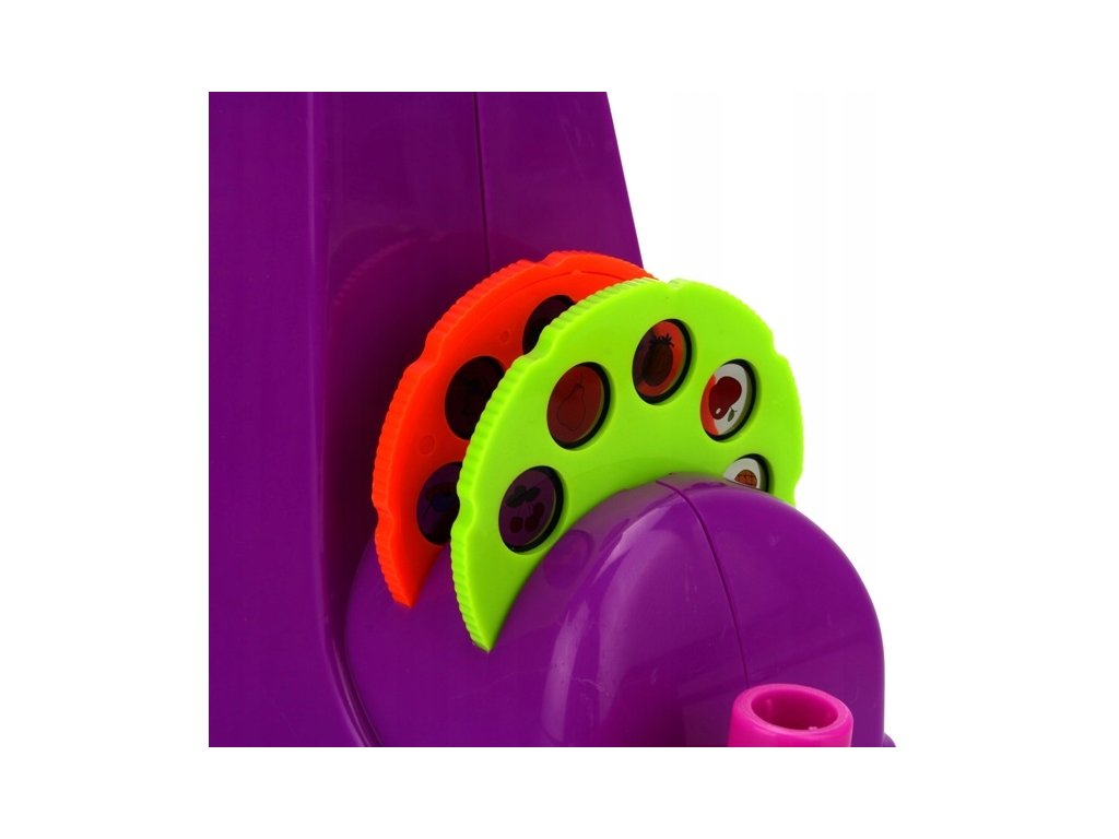 • 4 wymienne dyski do rzutnika na każdym po 8 wzorów podzielone tematycznie: zwierzątka, zwierzątka morskie, pojazdy, owoce