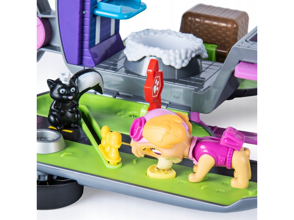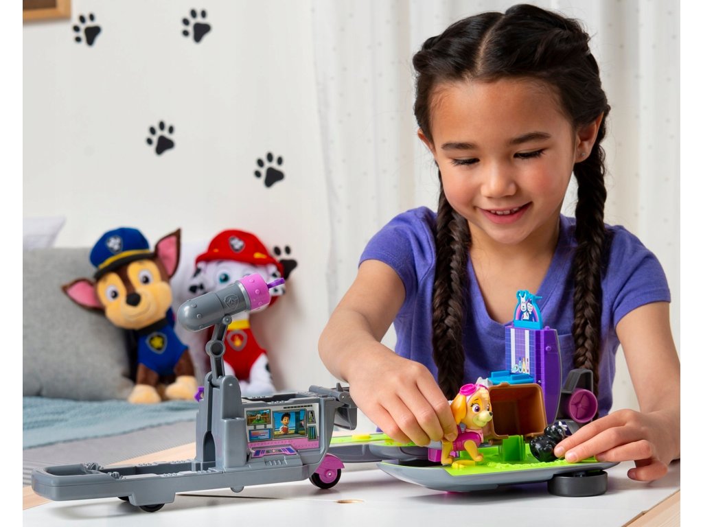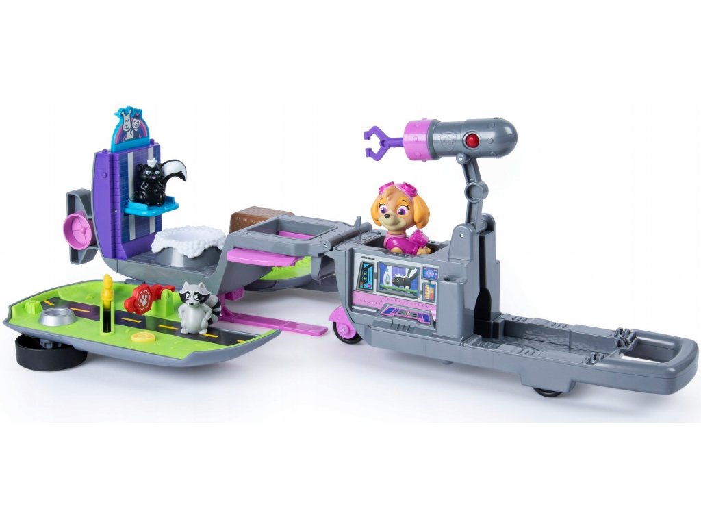 Dołącz do ekscytującego świata pełnego akcji ze swoim ulubionym bohaterem z Psiego Patrolu. Razem ze szczeniaczkiem Skye możesz uczestniczyć w 3 ekscytujących misjach ratunkowychpomóż kaczuszkom przejść przez ulicę, uratuj szopa uwięzionego pod koszem piknikowym i wykąp skunksa. Zestaw wyposażony jest w wyrzutnie. Załaduj hak i wyceluj w znak. Wyposażony w przycisk po naciśnięciu którego zanurzysz szopa w wannie.