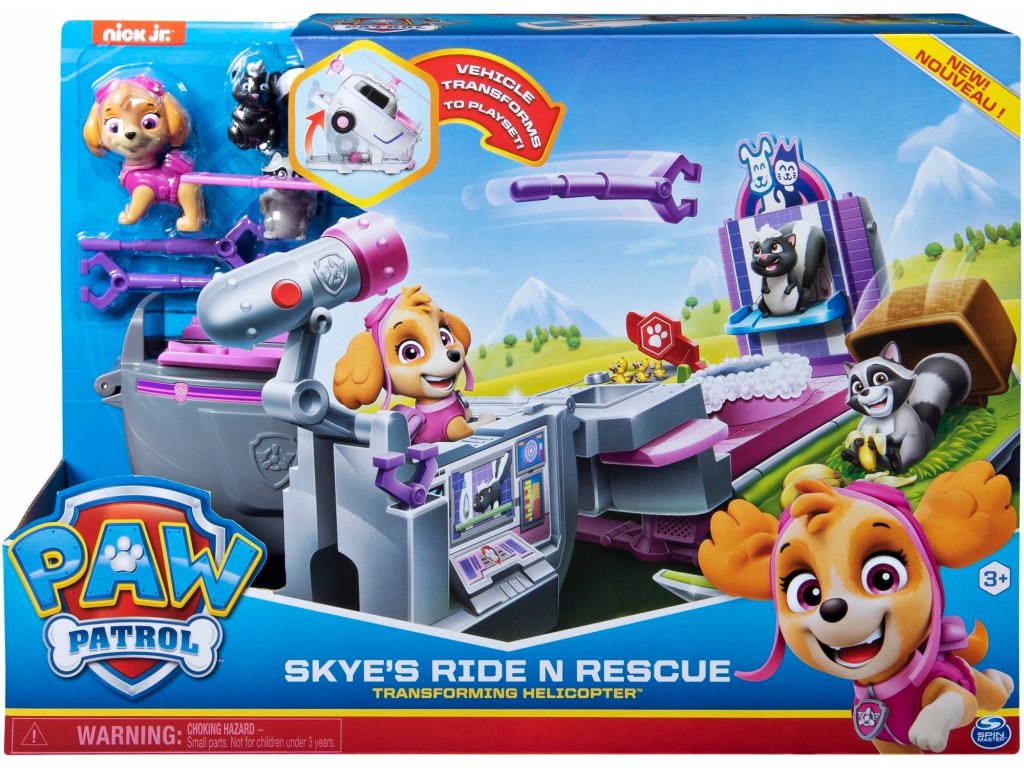 Transformujący helikopter Skye 2w1, wyprodukowany został przez powszechnie znaną i cenioną firmę Spin Master, to zabawka powstała na podstawie animowanego serialu dla dzieci pod tytułem Psi Patrol (ang. Paw Patrol). Serial ten opowiada o przygodach sześciu szczeniaków - Marshalla, Rubble'a, Chase'a, Rocky'ego, Zumy i Skye, oraz chłopca o imieniu Ryder, którzy wspólnie wyruszają na ratunek potrzebującym, a także dzielnie stawiają czoła stającym na ich drodze zagrożeniom.