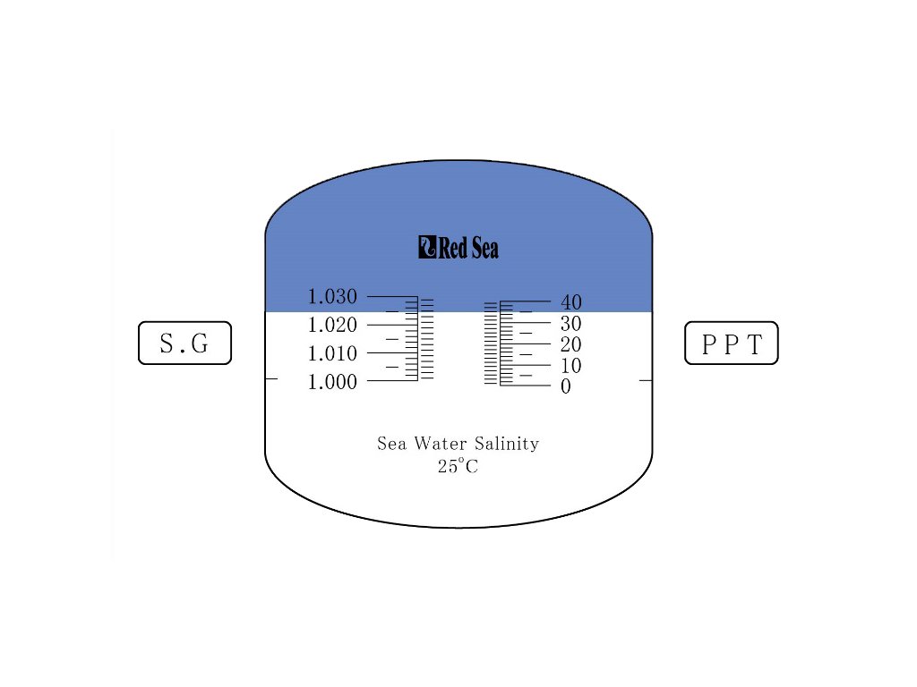 • Pomocou pipety dajte 2-3 kvapky destilovanej vody na povrch hranolu (pre čo najpresnejšie výsledky sa odporúča kalibrácia roztokom známej slanosti, napr. Salifert Refracto Check) ,