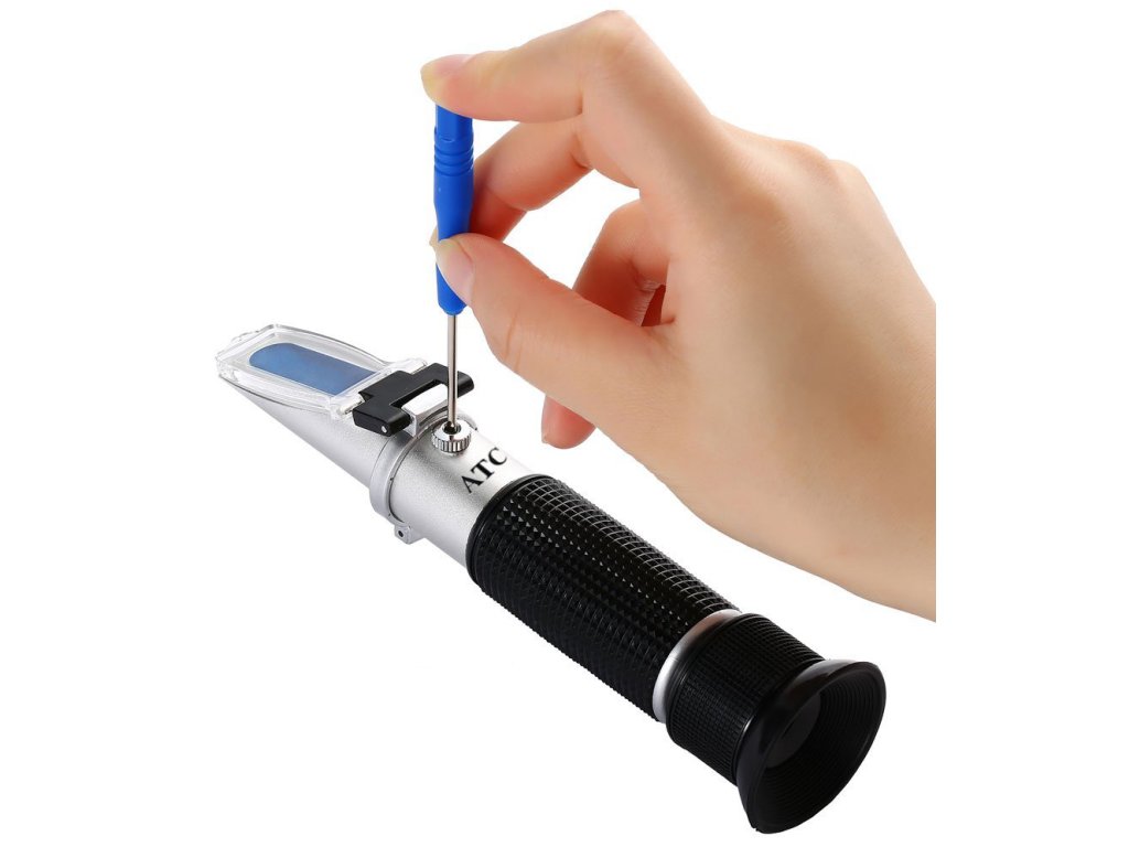 Pred prvým použitím musí byť refraktometer kalibrovaný (uvedená teplota okolia pri kalibrácii 20 ° C, tiež sa uistite, že prístroj dosiahol teplotu okolia):