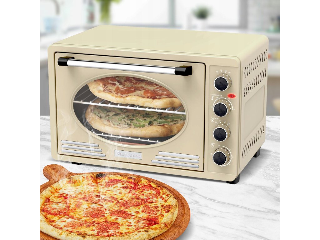 Przedstawiamy dobrze znany wszystkim piekarnik marki Turbo Tronic model TT-EV 45 ale tym razem  w odsłonie retro. Piecyk działa jak pełnowymiarowy piekarnik na blacie, idealny do pieczenia, podgrzewania i grillowania. Ten kompaktowy piekarnik pozwala przygotować pizzę z delikatną, chrupiącą skórką w krótkim czasie. Teraz wszystkie twoje zapiekanki i burgery będą idealne. Teraz każdy kurczak, który przygotujesz będzie idealnie złocisty
