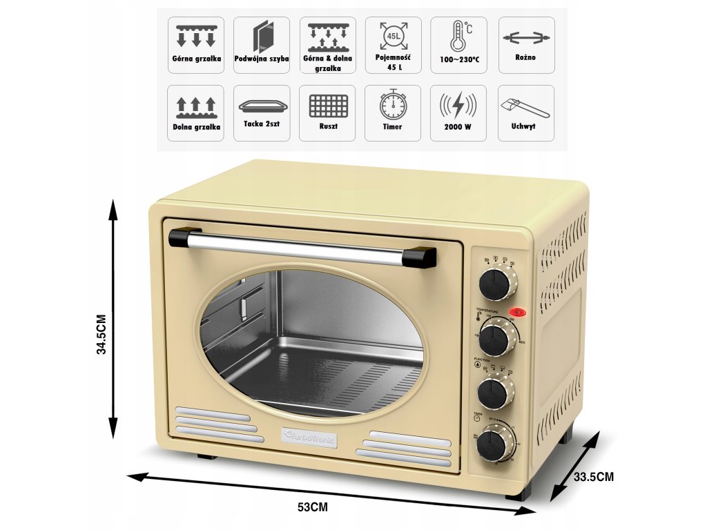 RETRO PIEKARNIK ELEKTRYCZNY TERMOOBIEG+ROŻNO 45L