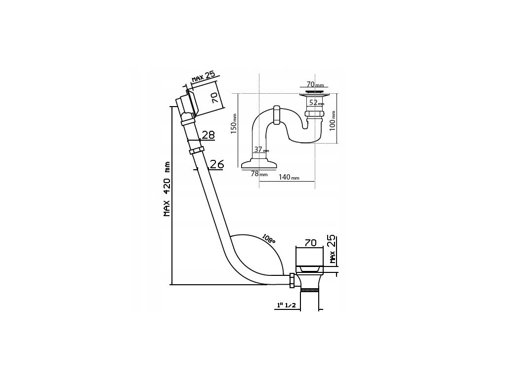 • w zestawie : przelew, korek na łańcuszku, syfon z odpływem w podłogę