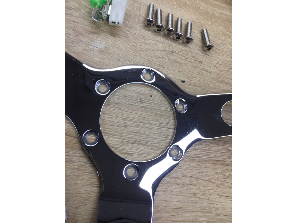 - Chromowane ramiona kierownicy dodają sportowy charakter do wnętrza