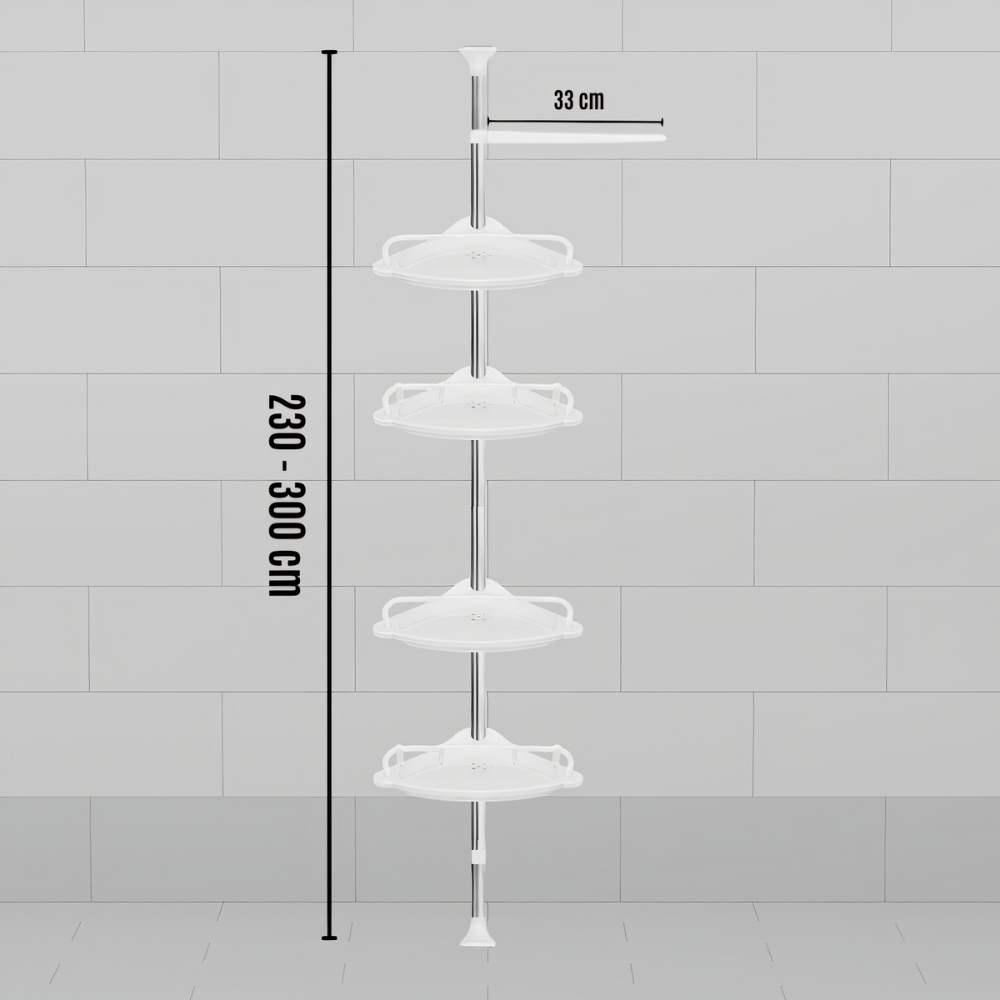 Rohová teleskopická kúpeľňová polica 230-300 cm