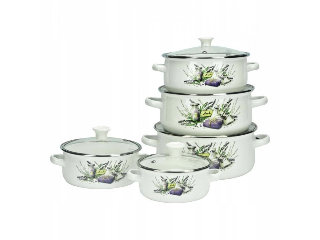Sada hrncov - Smaltované hrnce 10 prvkov hrniec + Lavender kryt