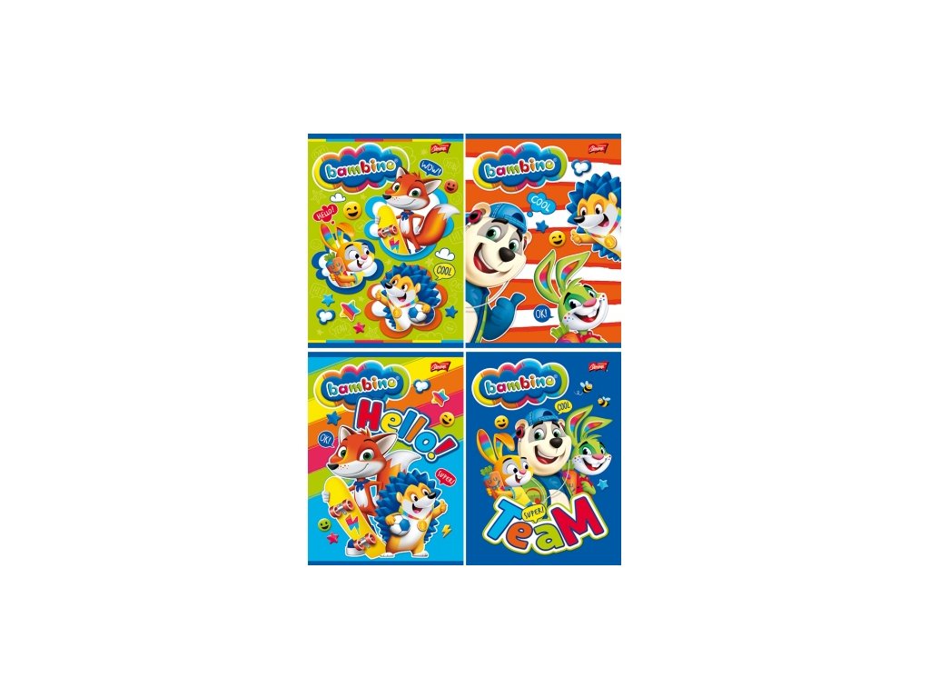 Zápisník obsahuje 10 farebných, lesklých listov papiera s hmotnosťou 90 g/m2. Sada farieb je zlatá, strieborná, žltá, oranžová, červená, zelená, nebesky modrá, fialová, hnedá a čierna. Kriedový kryt 115g/m2 využíva najnovšie dizajnové motívy BAMBINO. Na zdôraznenie kvality povrchovej úpravy je kryt dodatočne lesklý.