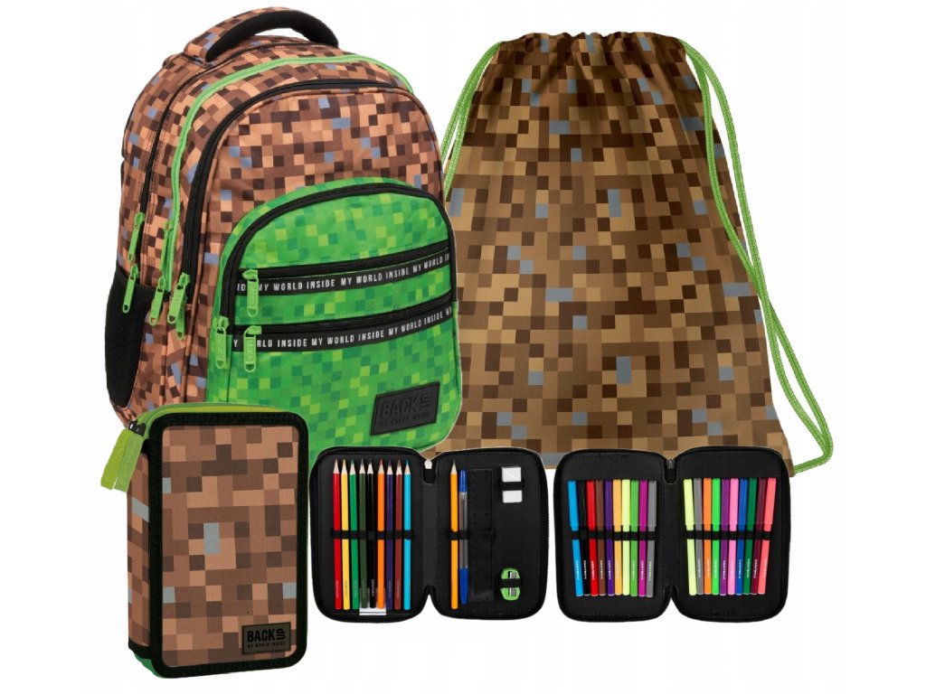 Veľmi dynamický vzor s hnedou a zelenou kockou, vyzerajúci ako veľké pixely, vytvorený pre fanúšikov počítačových hier. Názov vzoru: hra. Peračník s príslušenstvom.
