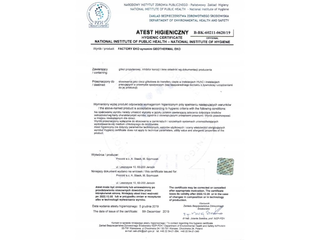 Produkt odpowiada wymaganiom higienicznym oraz posiada ATEST PZH .