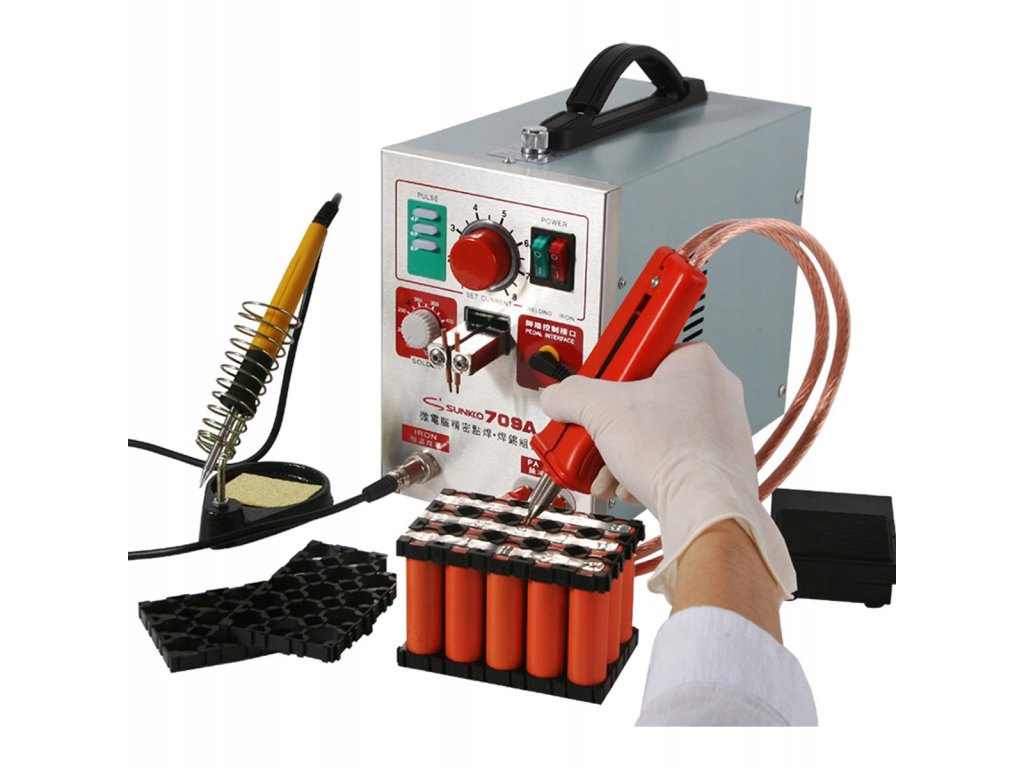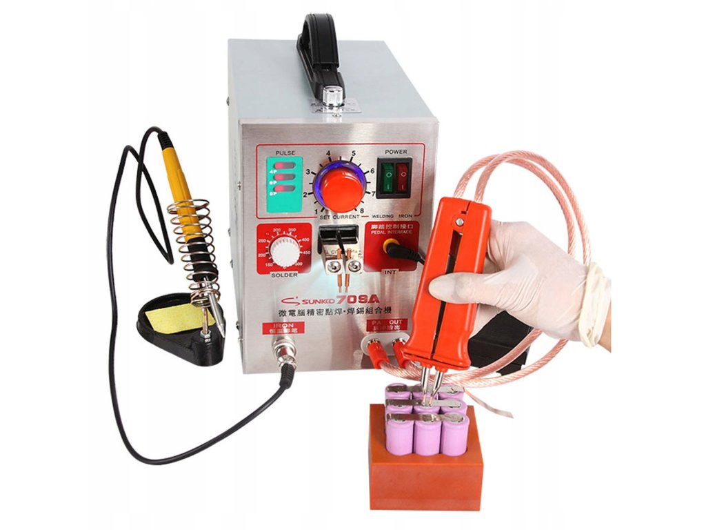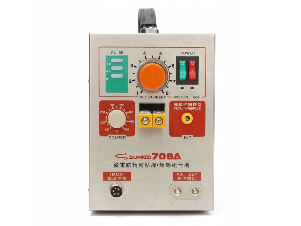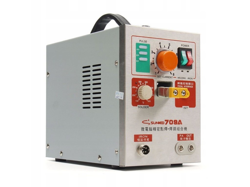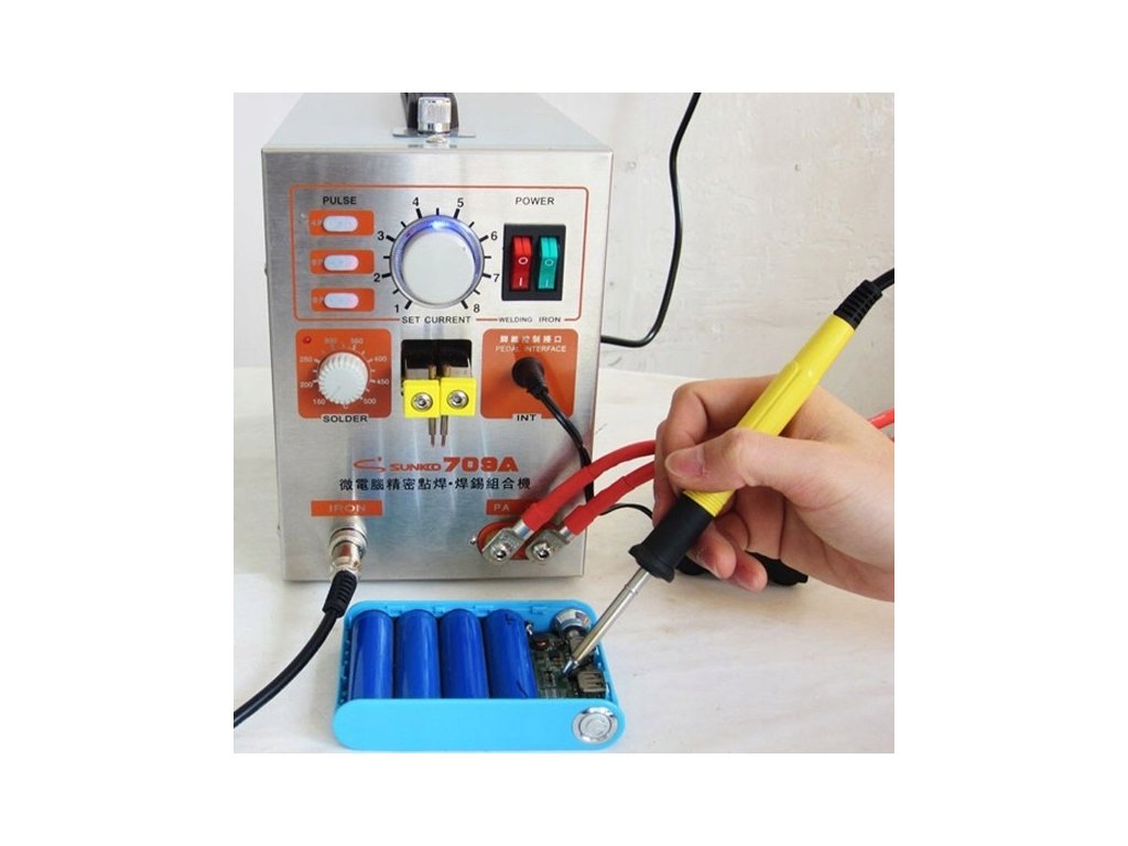 • Model 709A jest połączeniem urządzenia do spawania/zgrzewania punktowego baterii i lutowania na płytce drukowanej, co sprawia, że ​​praca jest kompleksowa i wygodna.