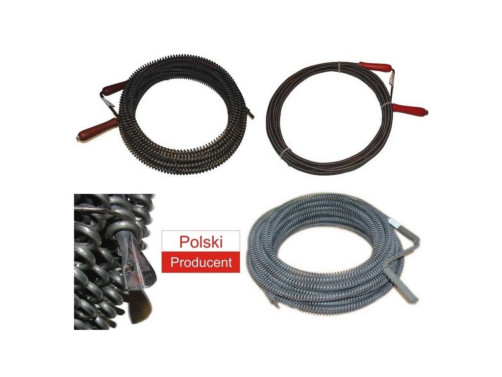Čistenie špirál na odblokovanie kanalizačných potrubí v domácnostiach a profesionálne inštalácie sú vyrobené z najkvalitnejších pružinových drôtov.