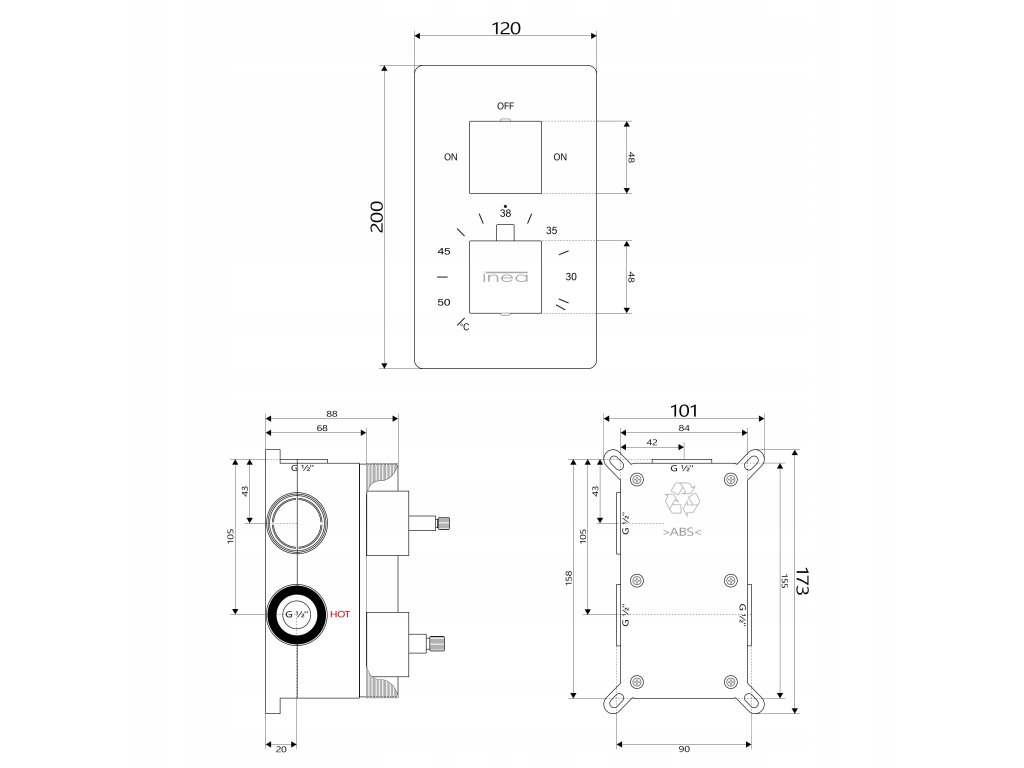 Najdôležitejšia vec je mať na pamäti pri inštalácii príslušné pripojenie teplej a studenej vody. I-e-box spoje sú popísané v tomto poradí ako horúcou vodou teplou a studenou vodou ako studené. Okrem toho, I-box spoločnosť INEA poskytuje nastaviteľnú montážnu hĺbku v rozsahu od 68 mm do 88 mm. Vstupné aj výstupné vody majú vnútorný závit ½ palca. Tento model môže byť namontovaný batéria ukrytý v konštrukcii sadrokartónu.