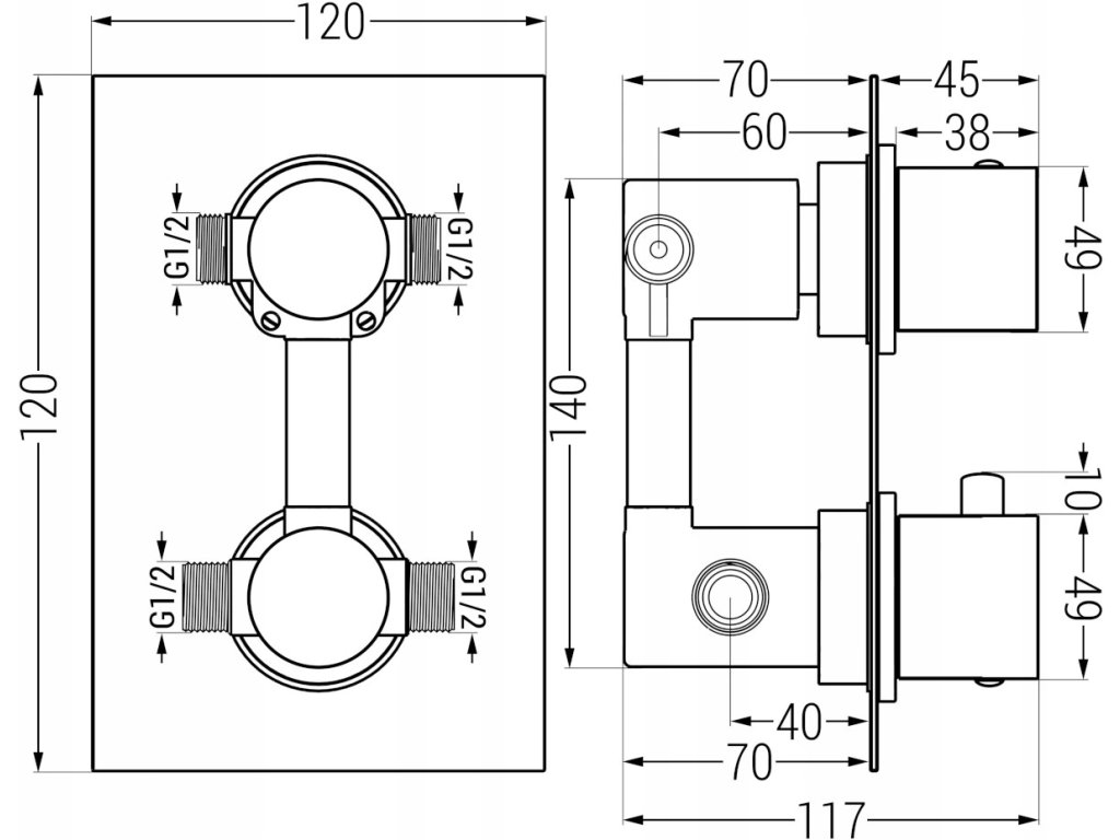• Pripojenie 2x vstup 1/2 "a výstup x2 1/2"