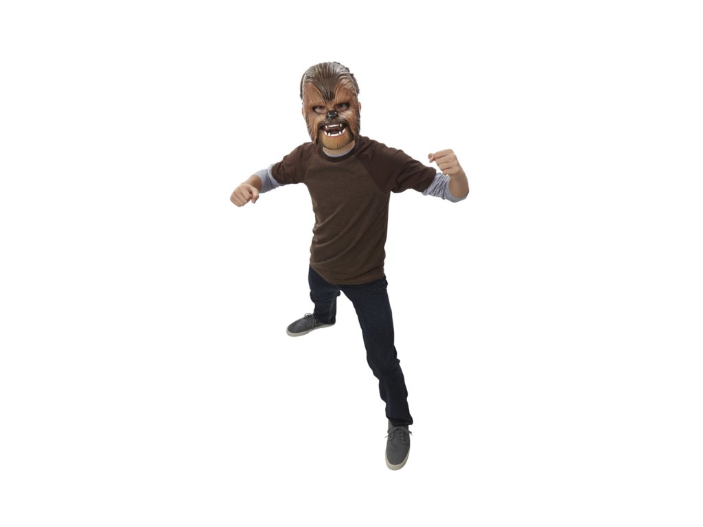 Załóż zupełnie nową elektroniczną maskę Chewbacci i wzbudź strach w sercach szumowin i złoczyńców całej galaktyki. Ta superowa elektroniczna maska przemieni Cię w lubianego przez wszystkich Wookiego. Ruszając ustami po jej założeniu, możesz aktywować szereg autentycznych warknięć i szczeknięć języka Wookiee, które odstraszą każdego szturmowca w zasięgu wzroku! Lekko otwórz usta, aby delikatnie zaryczeć lub otwórz je szerzej, aby zwiększyć głośność ryku Wookiego.