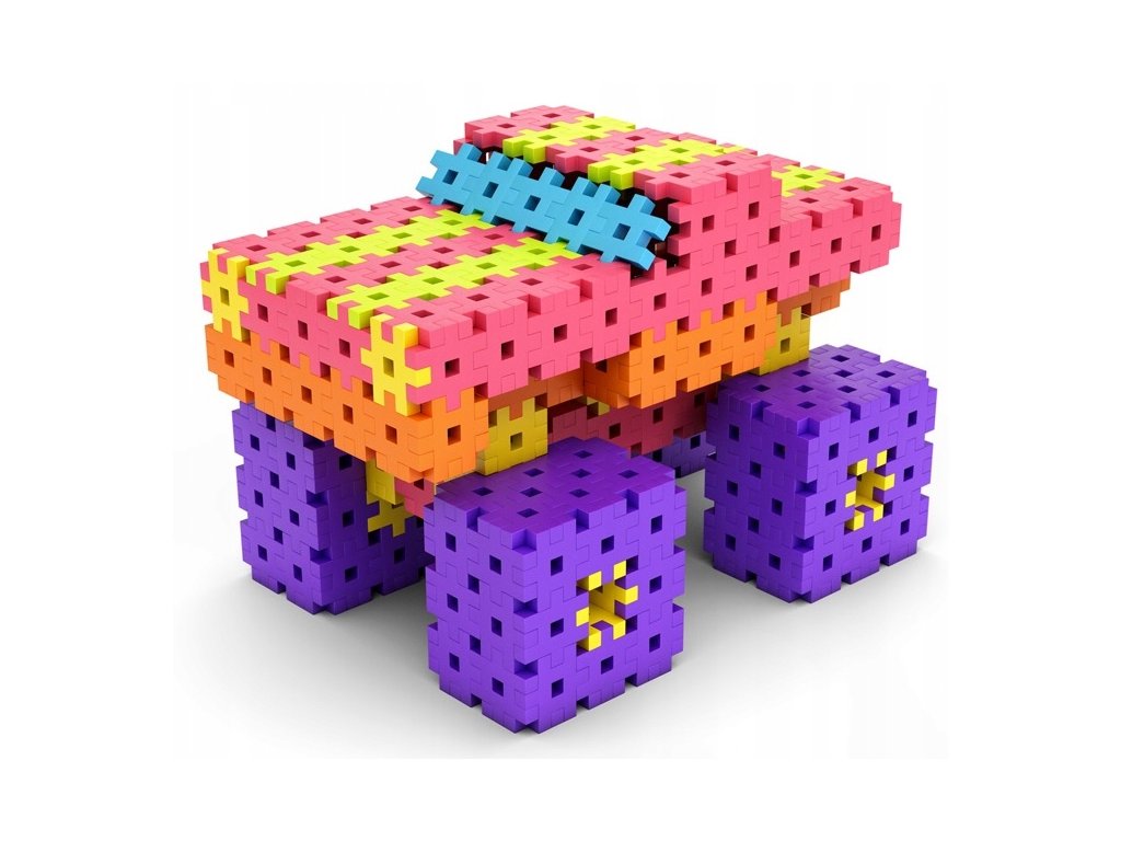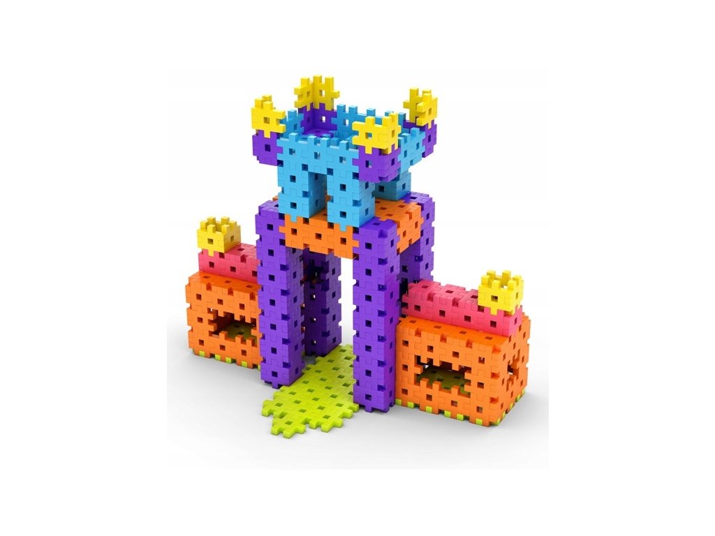 Co można z nich zbudować? Całkiem spory zamek obronny z dziedzińcem, monster trucka, wehikuł czasu lub …całe miasteczko! Tylko od wyobraźni dziecka zależy, w jaki kształt zamienią się podobne do puzzli płaskie elementy, łatwe w łączeniu jak w i demontażu. Tak duży zestaw zajmie dziecko na długie godziny, pozwoli też włączyć się w zabawę rodzicom i rodzeństwu. Im więcej uczestników zabawy – tym więcej pomysłów i radości ze wspólnego tworzenia!