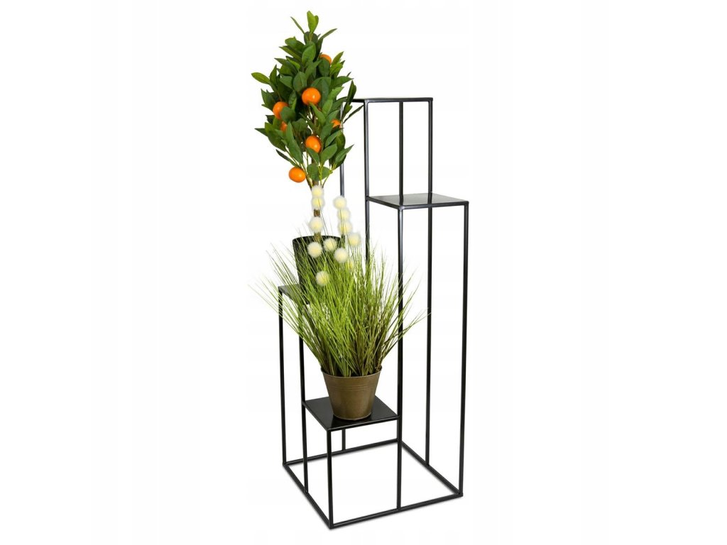 Nowoczesny kwietnik stojący w stylu loftowym. Dzięki swojej prostocie i unikalnemu designowi stojak będzie idealny jako uzupełnienie do każdego stylu mieszkania, pokoju czy domu. Dzięki solidnemu i wytrzymałemu wykonaniu sprawdzi się również na: balkon, ogród, altanę czy werandę. Stojak wykonany jest z drutu stalowego, malowanego proszkowo, a zatem jest odporny na czynniki zewnętrze oraz zniekształcenia. Kwietnik jest trwały, lekki i stabilny dzięki czemu ma uniwersalne zastosowanie w domu czy ogrodzie.