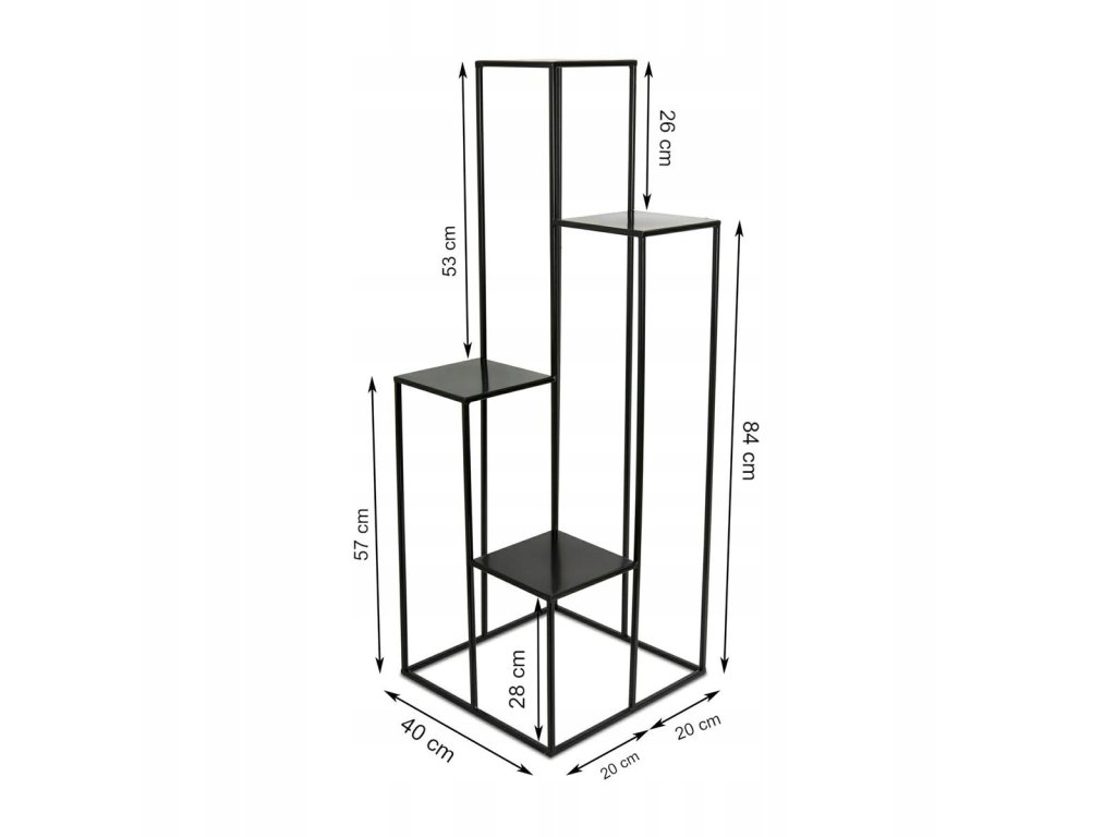 Kwietnik ma cztery poziomy wysokości : 110 cm, 85 cm, 58 cm oraz 28 cm.