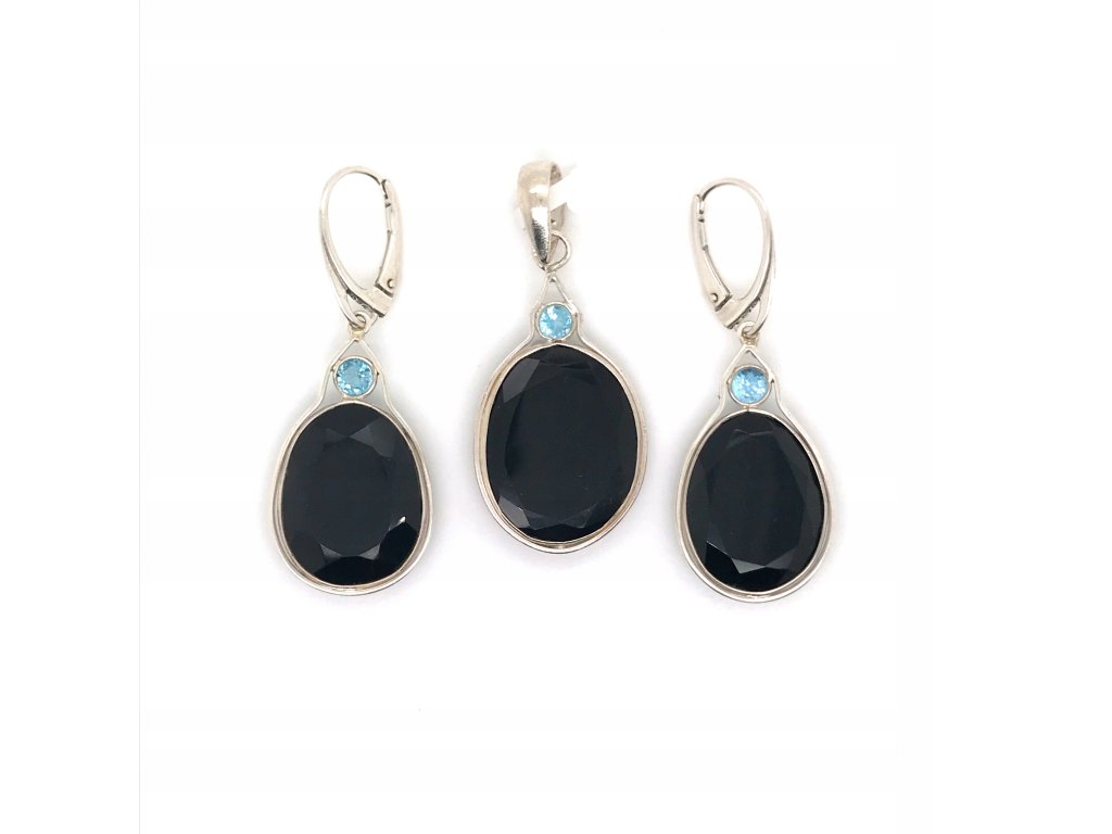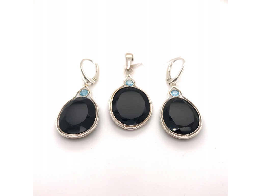 STRIEBORNÝ SET 925 STERLING SILVER S ONYX A MODRÁ TOPAZEM