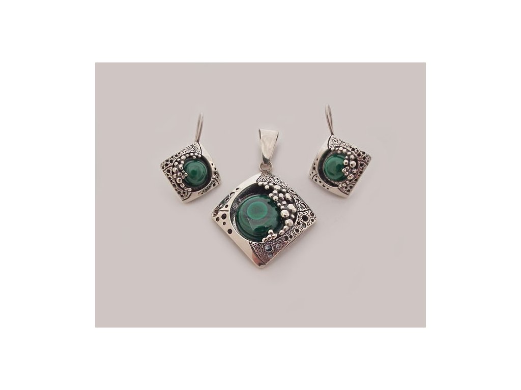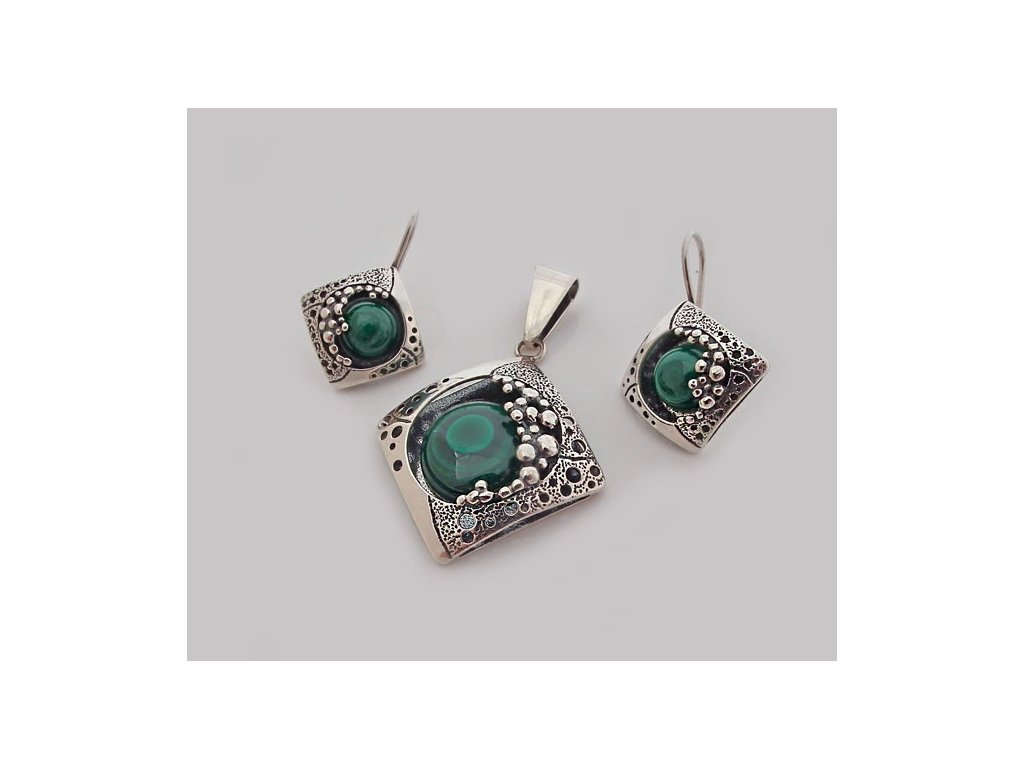 STRIEBRO OKSYDOWANY SÚBOR MALACHITEM - ODPORÚČAM