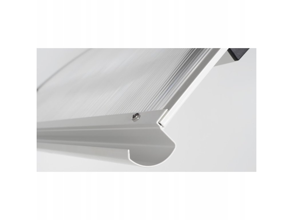 Zadaszenie płaskie z rynienką odpływową oraz uszczelką przyścienną. Konstrukcja wykonana z aluminium malowanego proszkowo- kolor biały RAL 9016, kolor brązowy RAL 8017 lub kolor antracyt RAL 7016.