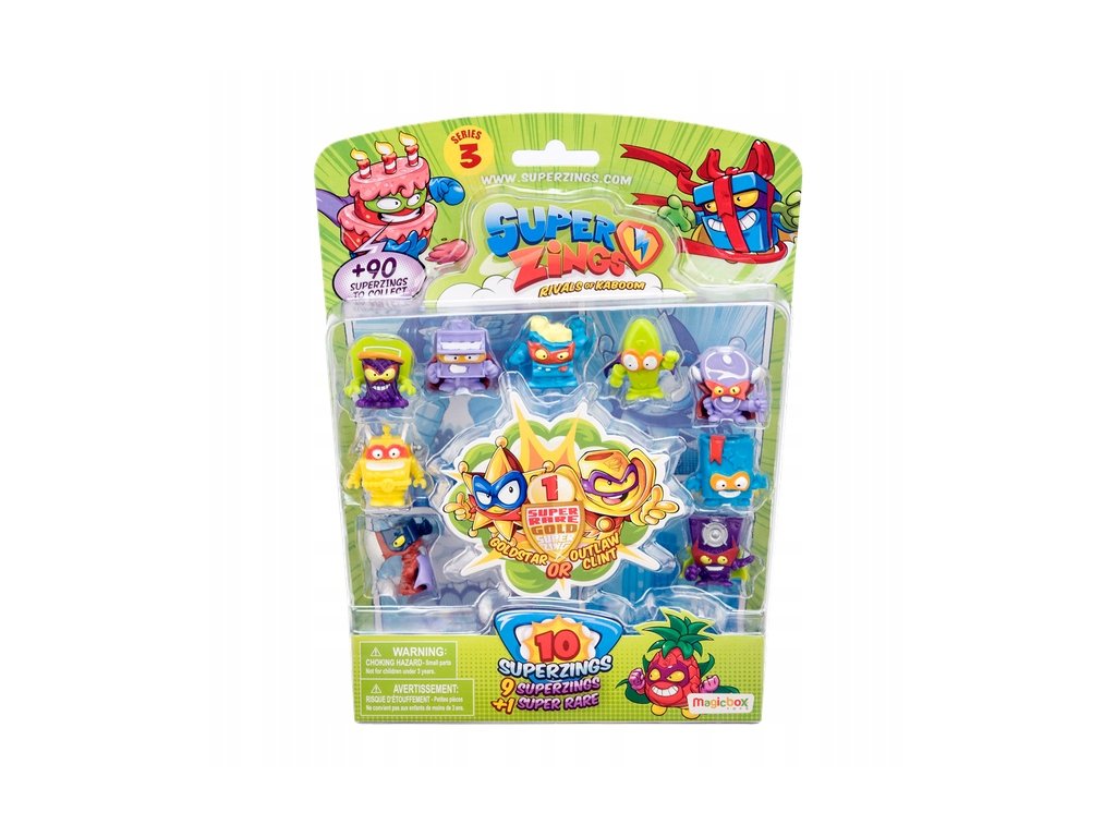 Uzupełnij swoją kolekcję bohaterów 3 serii SuperZings postaciami zawartymi w zestawie. W tym opakowaniu znajdziesz aż 10 różnych figurek SuperZing, w tym jedną bardzo rzadką czyli złotą (Goldstar lub Outlaw Clint). Dzięki temu zestawowi twoja kolekcja SuperZings szybko się powiększy!