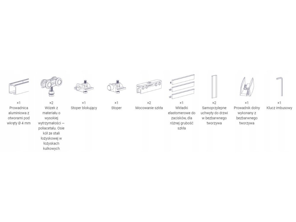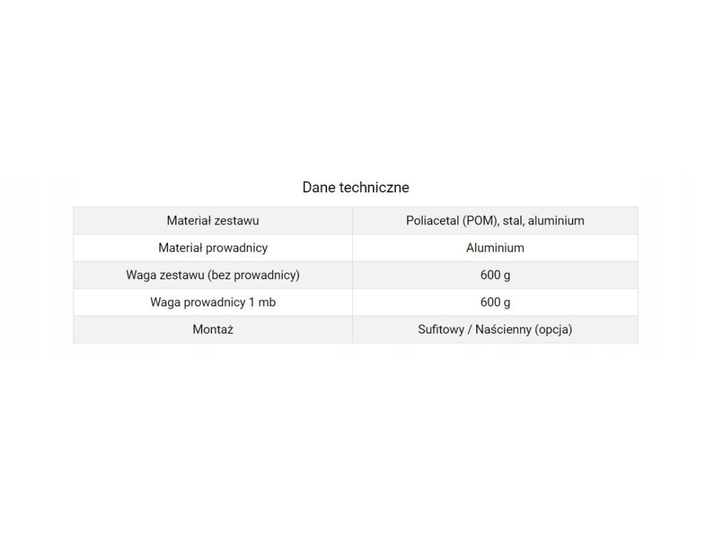 – Dostępne produkty uzupełniające: klamry mocujące prowadnicę do ściany, domykacz, maskownica aluminiowa (w przypadku mocowania do ściany)