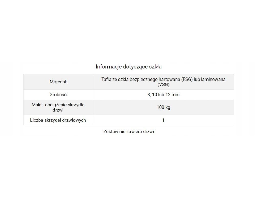 – Maks. obciążenie skrzydła drzwi 100 kg