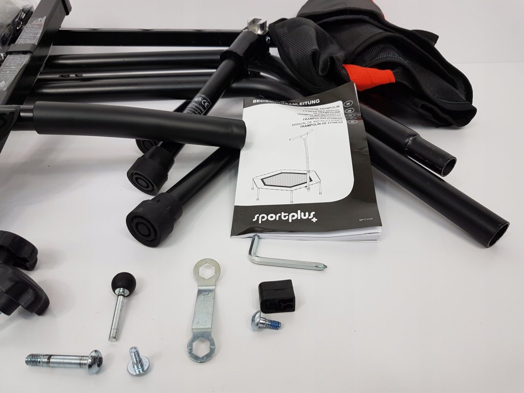 Trampolina z rączką FITNESS SPORTPLUS SP-T-111-F - nowa, nieużywana, produkt pochodzi ze zwrotów nadwyżek magazynowych.