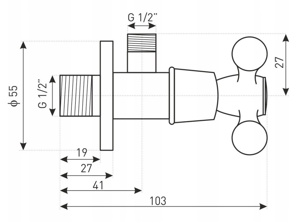 LUX 1/2x1/2 zawór kątowy w stylu retro, mosiądz antyczny.