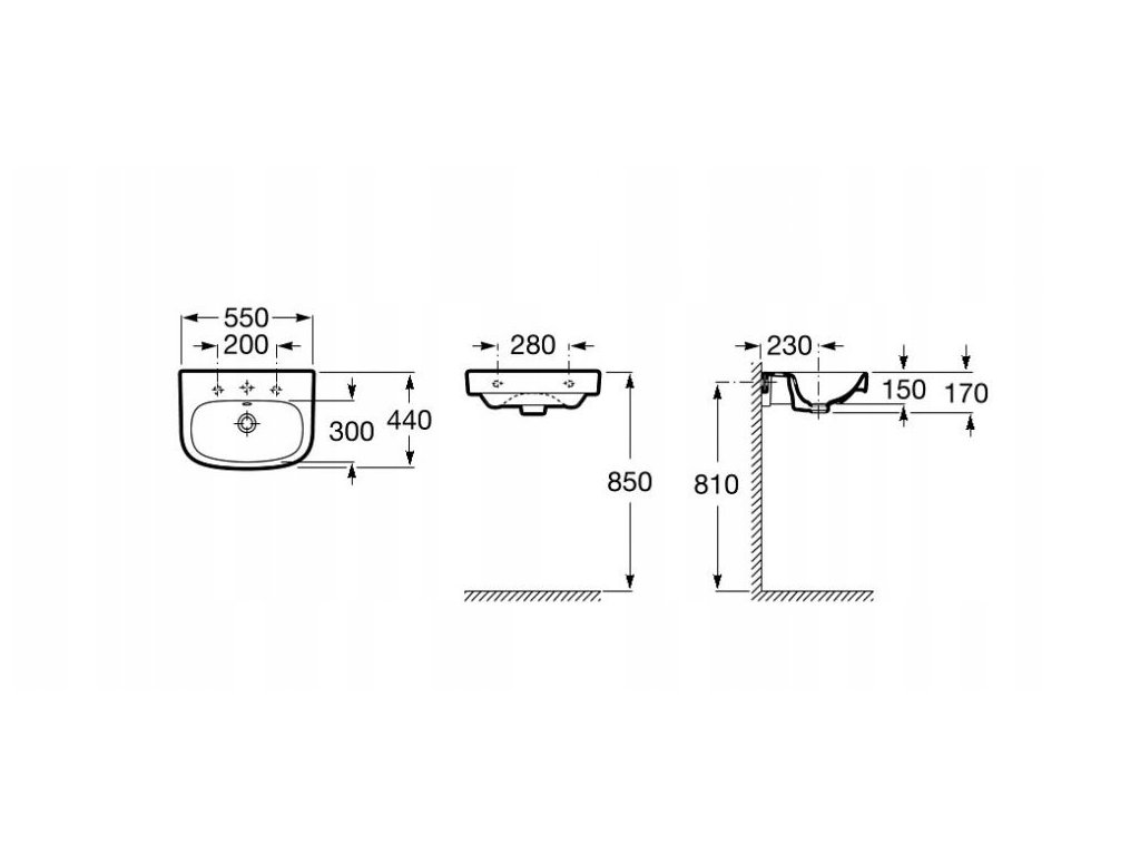 Umývadlo - ROCA UMYVADLO DEBBA 55cm, MONTÁŽ NA STENU A325995000
