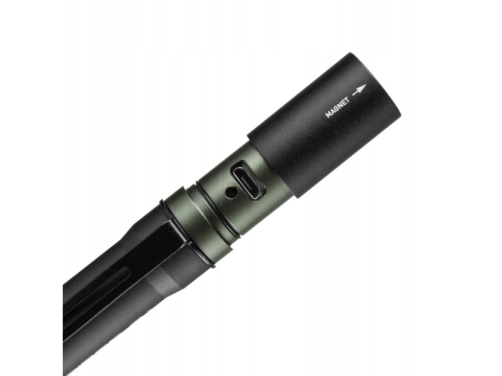 Mała i uniwersalna latarka długopisowa. Dzięki niewielkim rozmiarom i wadze pozostaje niezauważona aż do chwili, kiedy potrzebujesz jej użyć. Pracuje od 2 h w trybie 130 lumenów aż do 16 h świecąc z mocą 13 lm. Silny magnes umiejscowiony w tylnym włączniku uwalnia ręce abyś mógł zająć się pracą. Latarka jest ładowana bezpośrednio kablem USB. W zestawie z mocnym klipsem.