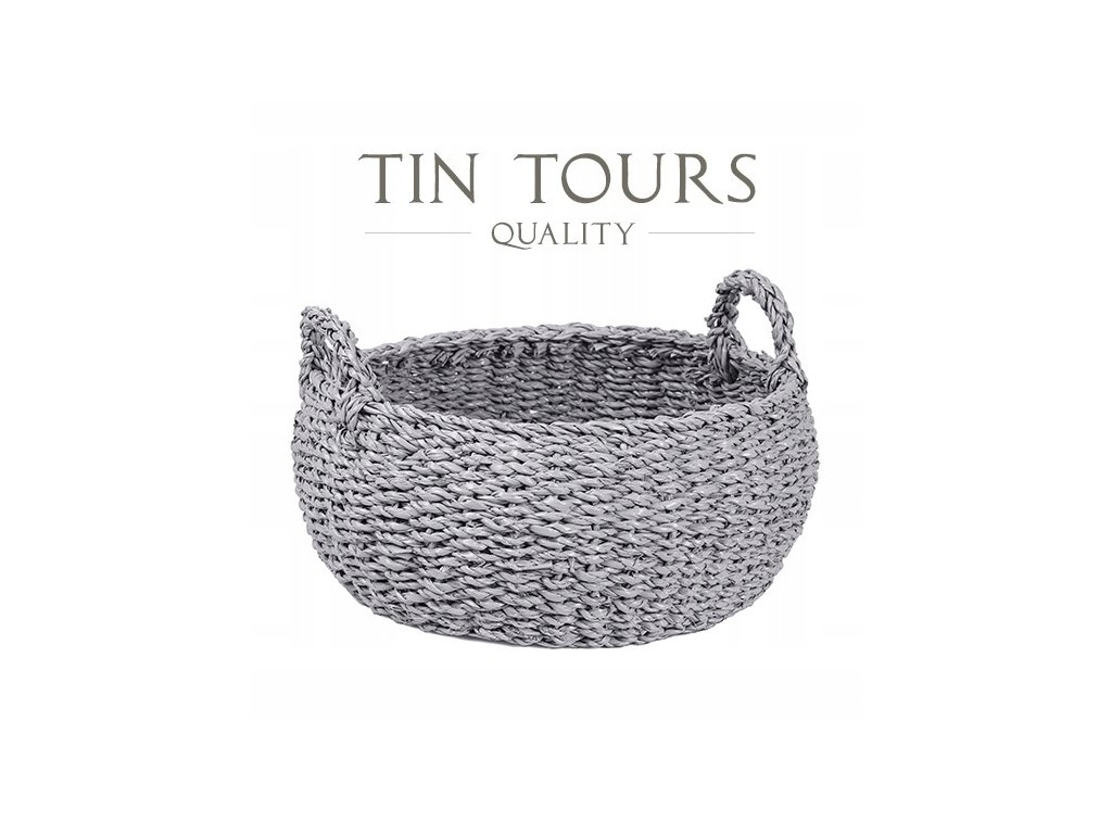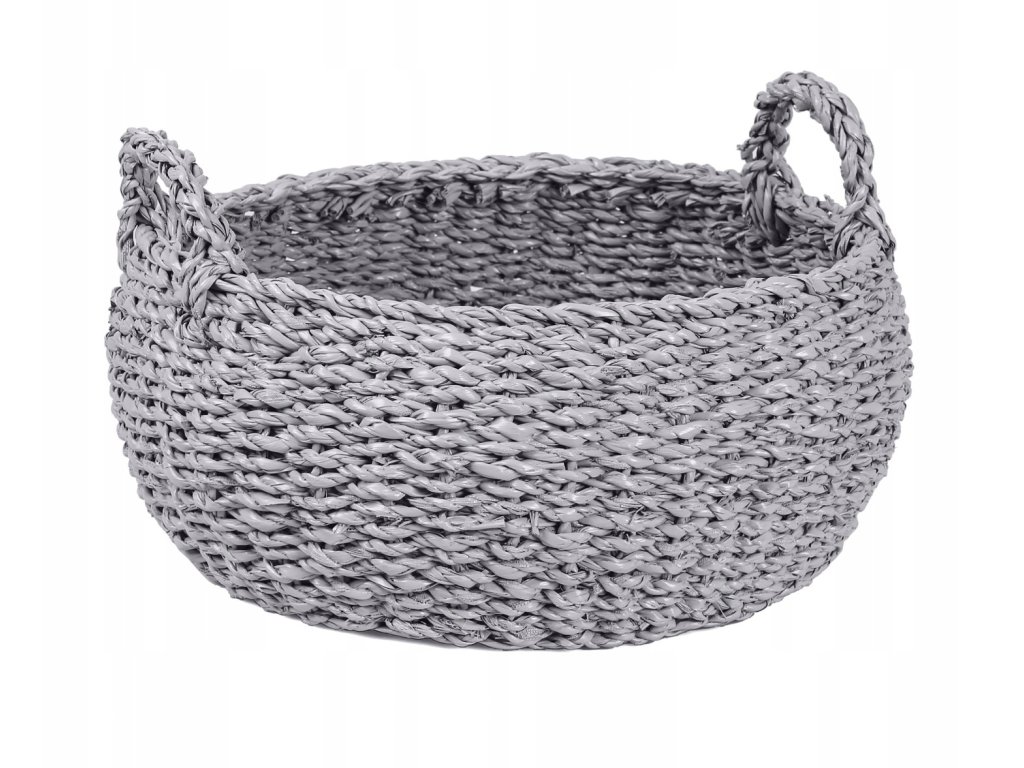 OKRĄGŁY SZARY KOSZ Z TRAWY MORSKIEJ Z UCHWYTAMI 30x30x16/22h cm