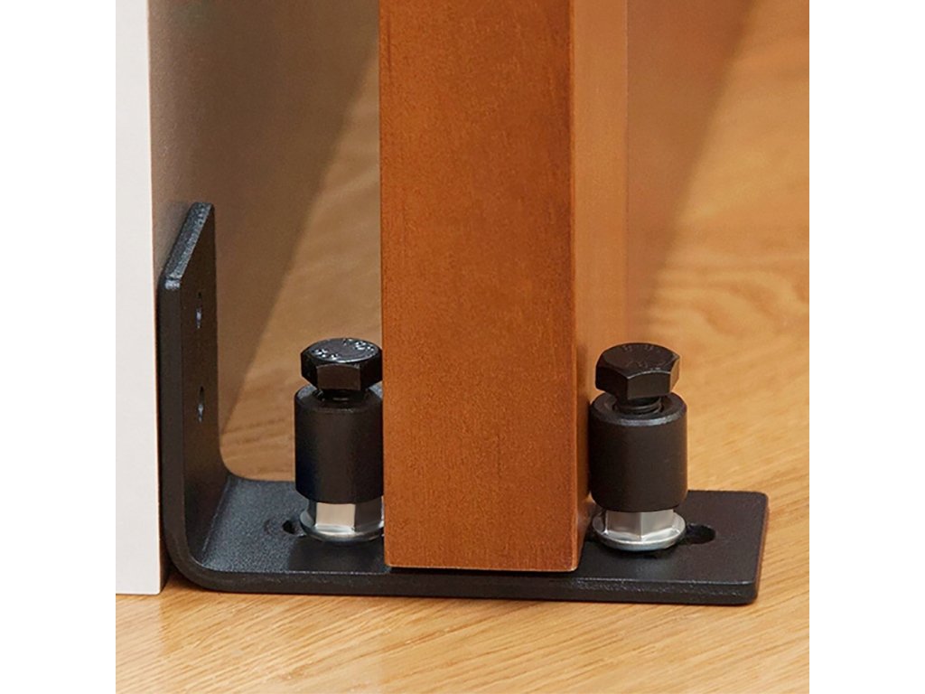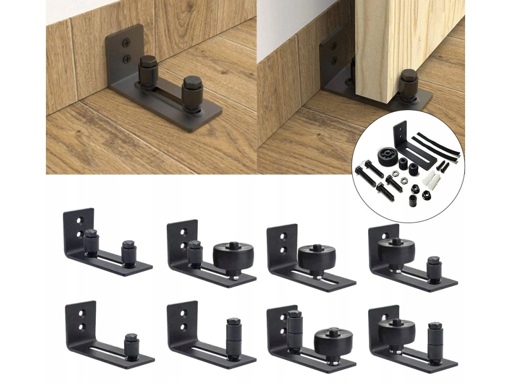 dzięki regulowanej podstawie, umożliwia zamocowanie drzwi różnych grubości, bez konieczności ich frezowania. Prowadnik jest montowany do ściany, dzięki czemu nie trzeba wiercić w podłodze.