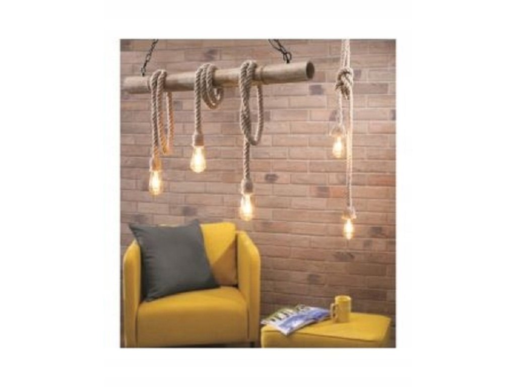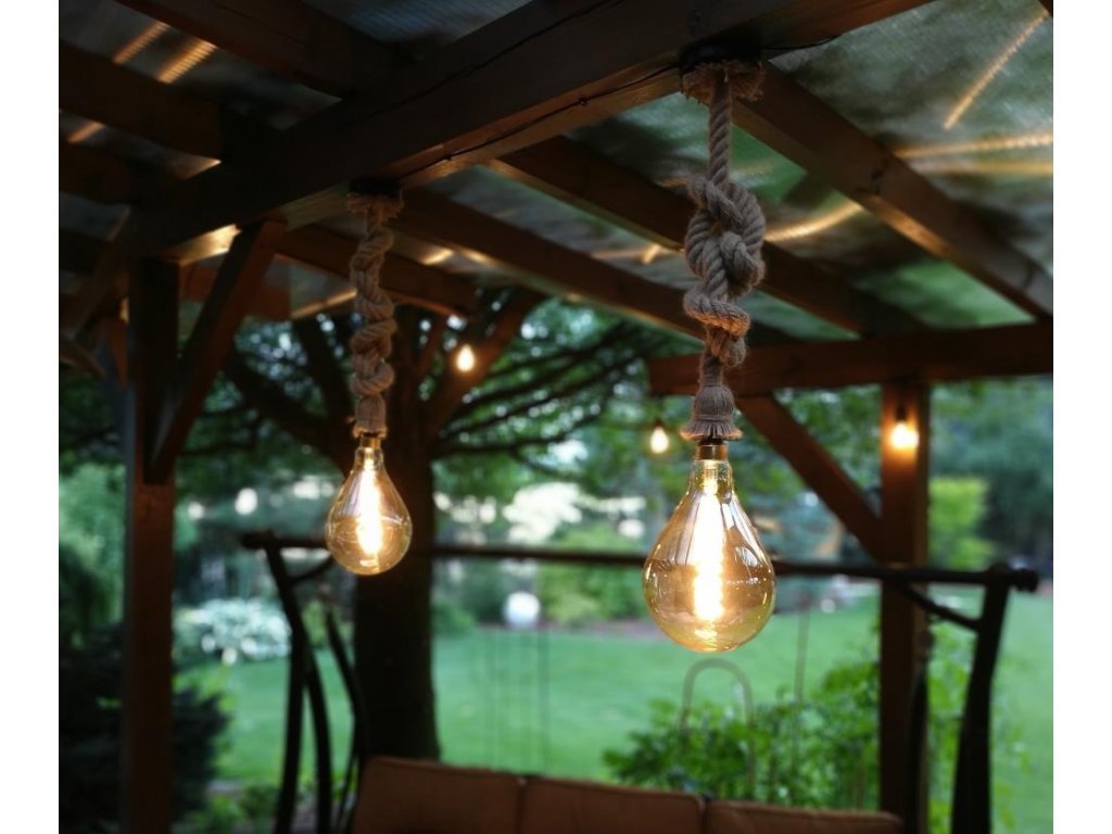Oprawa z trzech jutowych sznurów stworzy ciekawy design w pomieszczeniach jak i altanach ogrodowych inspirowanych naturą. TRZY sznury o długości 1,5 m każdy są zakończone gniazdami do żarówek E27. W metalowej kopule, montowanej na suficie, znajduje się szybkozłącze i dodatkowy przewód uziemiający. Sznury można dowolnie zaplatać, tworząc fantazyjne kompozycje.