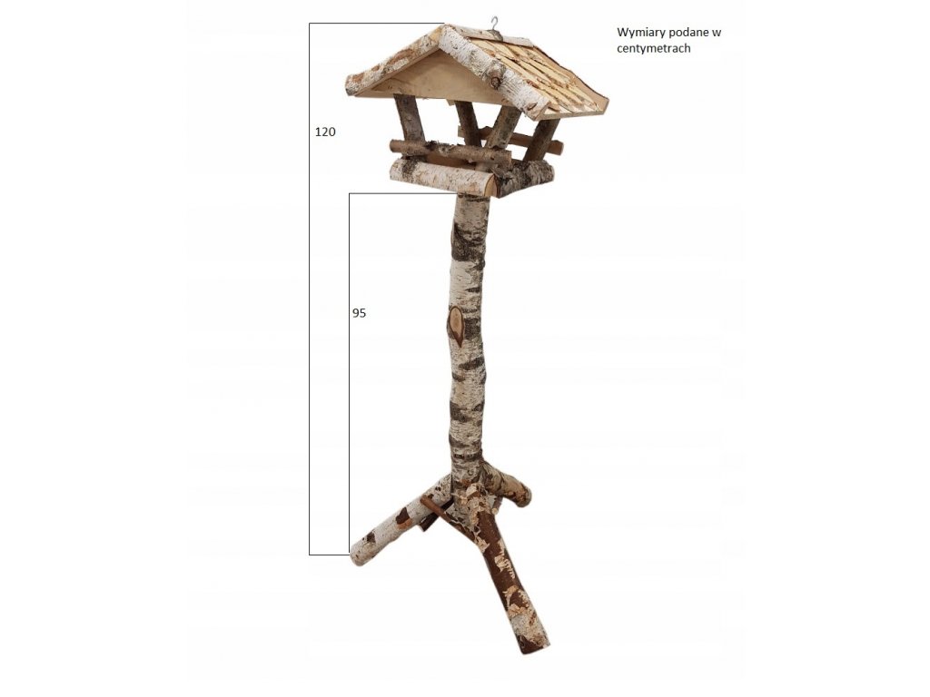 Stylowy karmnik dla ptaków wraz ze stojakiem.Wykonany z drewna brzozowego. Wysunięty dach zapewni suchy pokarm a ciekawy wygląd upiększy ogród.