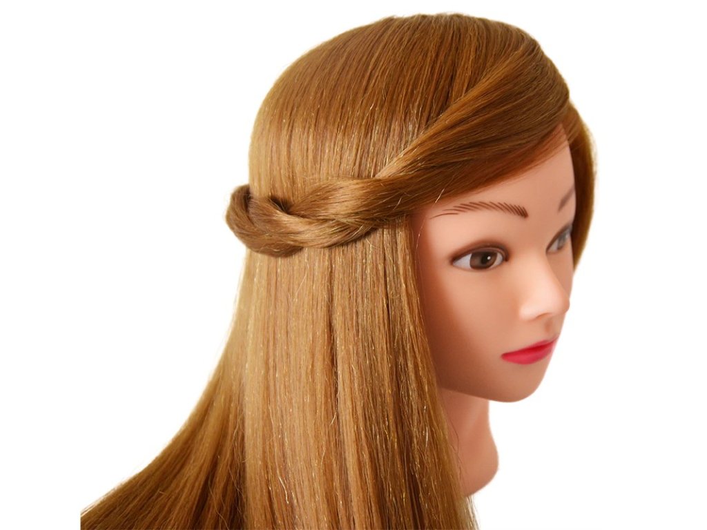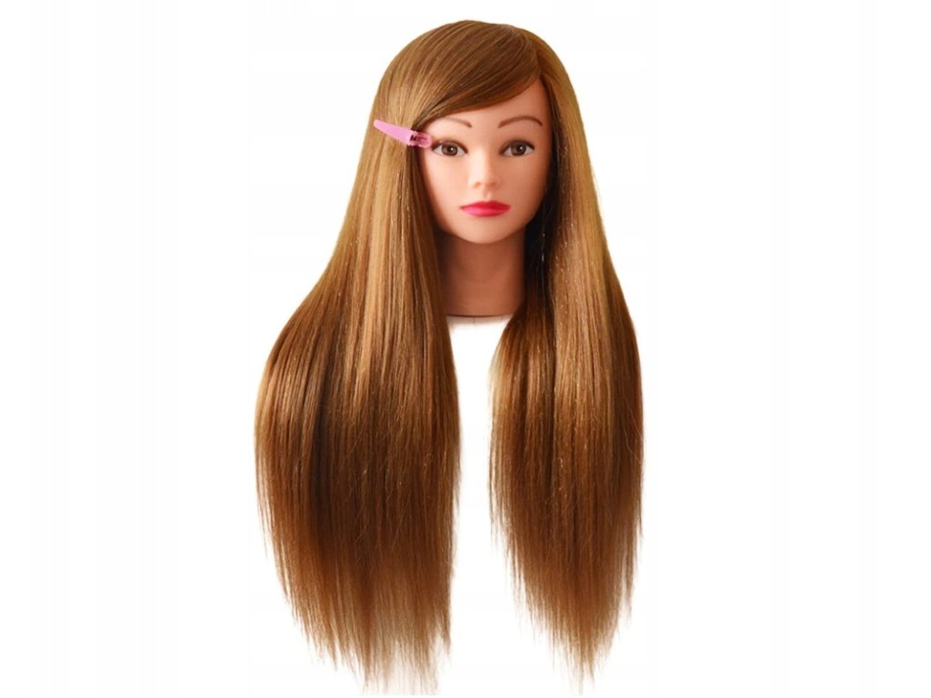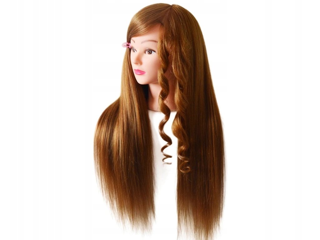 Profesjonalny manekin / głowa do treningu układania fryzur. Manekin to aż 85 % prawdziwych ludzkich włosów. Włosy w kolorze ciemno brązowym. Dodatkowo w zestawie uchwyt na główkę.