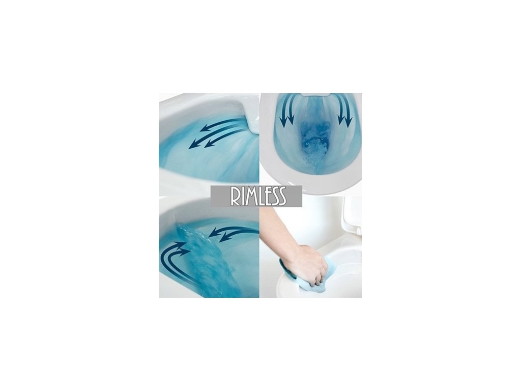 Technologia Rimless - ułatwia utrzymanie miski wc w czystości, brak zakamarków sprawia że osad oraz kamień nie mają się gdzie gromadzić.