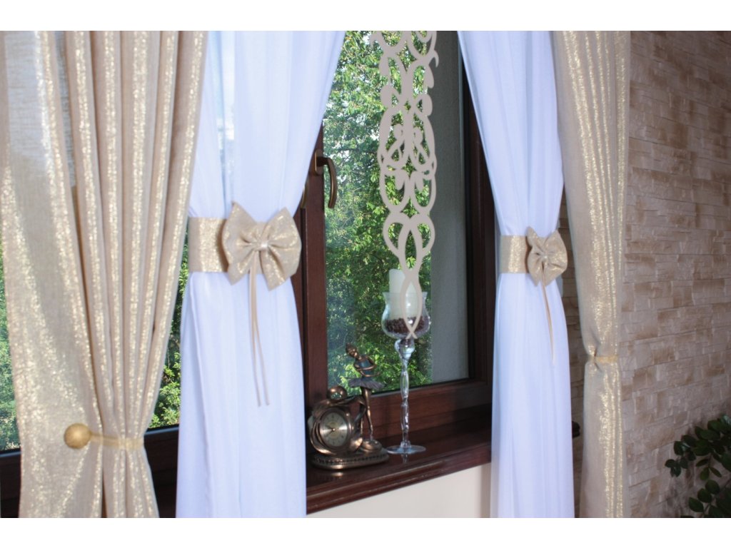 Podana cena 130 zł dotyczy jednej  zasłony  w kolorze złotym ( bez magnesu spinającego zasłonę)