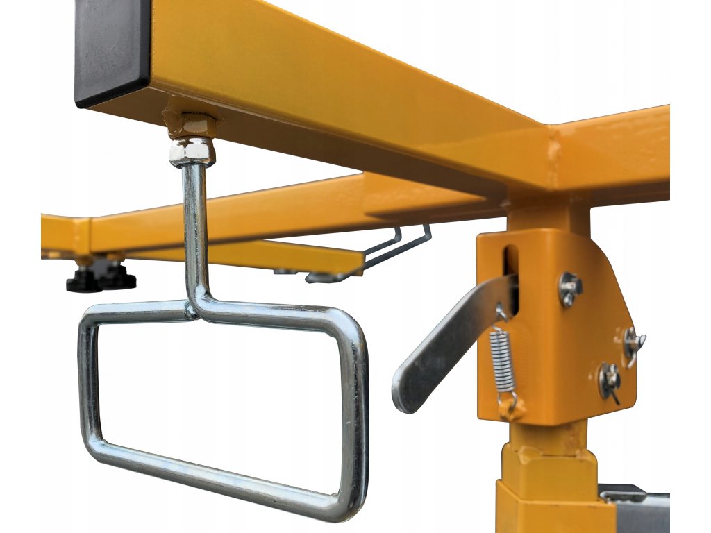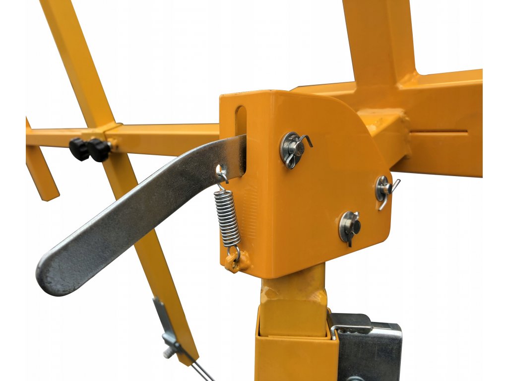 Mechanizm zapadek pozwala na bardzo szybkie rozłożenie oraz złożenie nóg podnośnika.