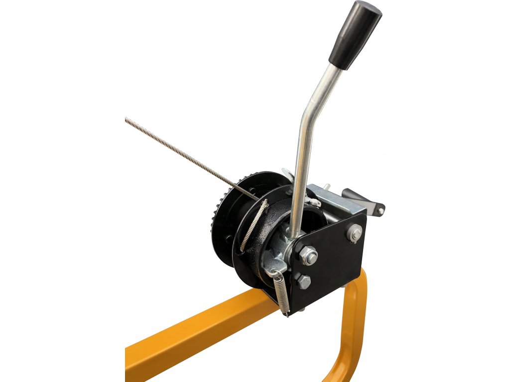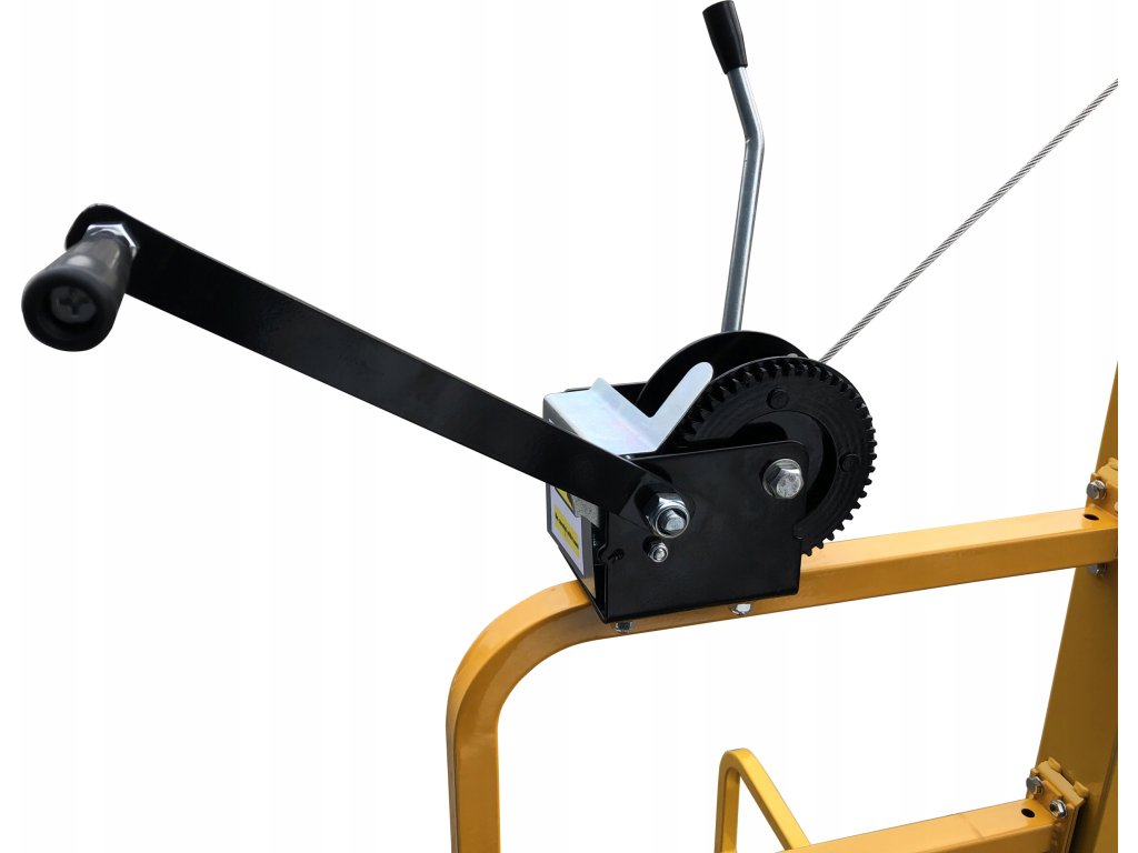 Koło naciągowe posiada własny hamulec dzięki którego możemy zatrzymać podnośnik na dowolnej wysokości bez obawy złożenia podczas pracy.