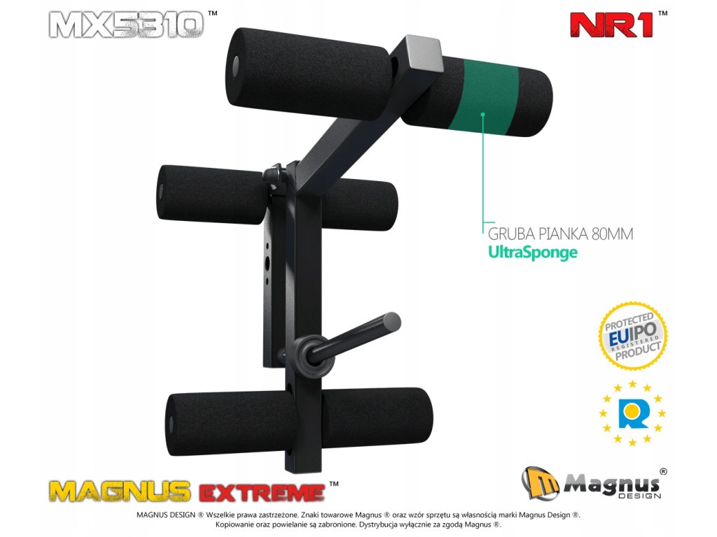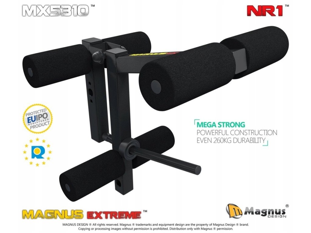 Jeśli macie już ławeczkę, szczególnie firmy MAGNUS i chcecie popracować nad dolnymi partiami mięśni to ten dodatek na pewno będzie wskazany. Wypracujecie na nim wszystkie mięśnie nóg bez obawy o bezpieczeństwo i za mały udźwig. Możemy doładować aż 260 kg i ćwiczyć w pełnym komforcie - tak zaprojektowana jest prasa MAGNUS MX5310.