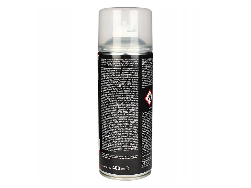 zloženie: cypermetrín 0,5 g / 100 g, tetrametrín 0,2 g / 100 g, geraniol 0,01 g / 100 g