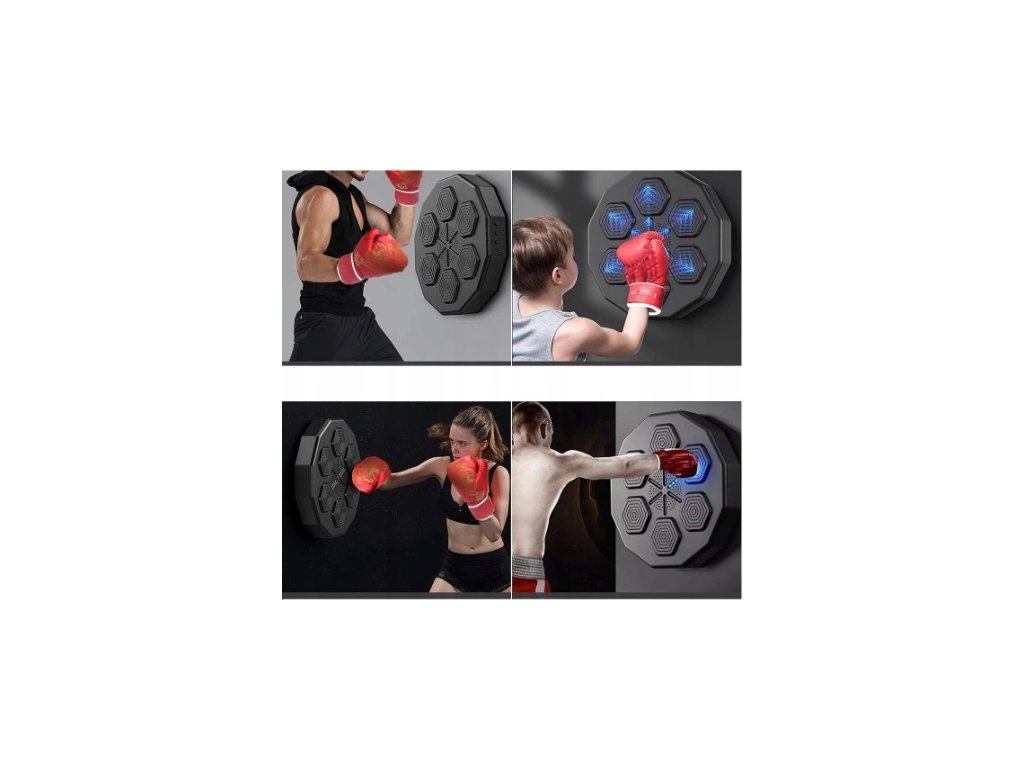 • Podsvietenie zobrazuje cieľ a pozíciu zásahu na stene a dodržiavanie rytmu nácvikov úderov môže precvičiť koordináciu ruka-oko a reakčné schopnosti.