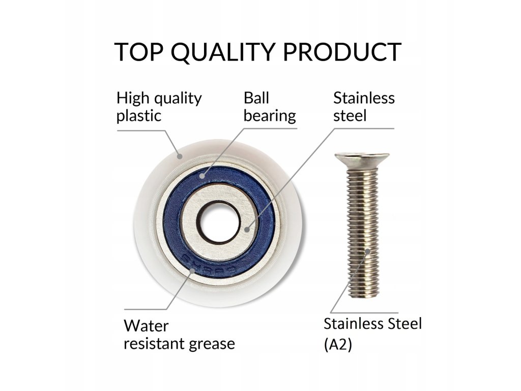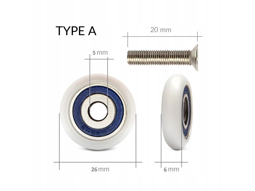 Przedmiotem aukcji są kółeczka typu A w komplecie po 8 szt wraz z śruby nierdzewnym M4/20 mm