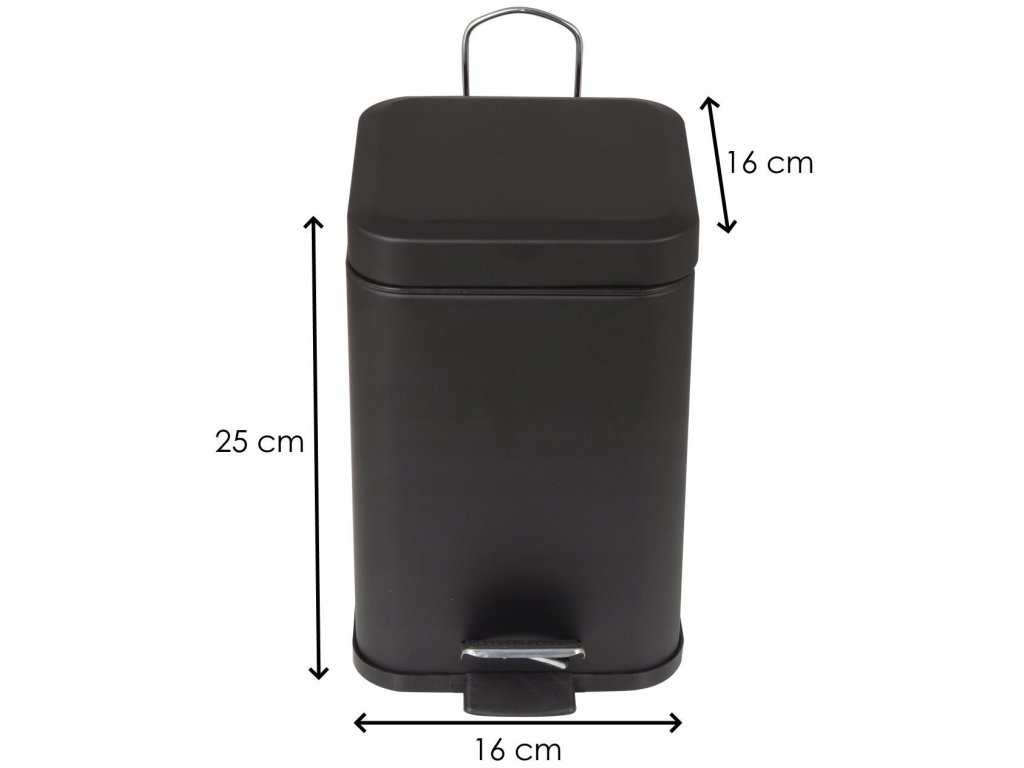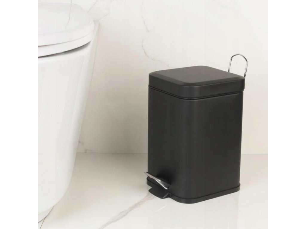 • koše </ b> s klapkou (3l), s komfortným pedálom, prostredníctvom ktorého môžeme otvoriť kryt bez použitia rúk. Vnútri bin čierny, plastový kontajner, ktorý má praktické držadlo, takže je ľahšie ho vyprázdniť. Základom celého produktu je vyrobená z plastu, ktorý nepoškriabe povrch podlahy v kúpeľni alebo WC. Vzadu je pohyblivý kovový úchyt na prenášanie alebo pozastaviť kôš. </ Li> </ ul>