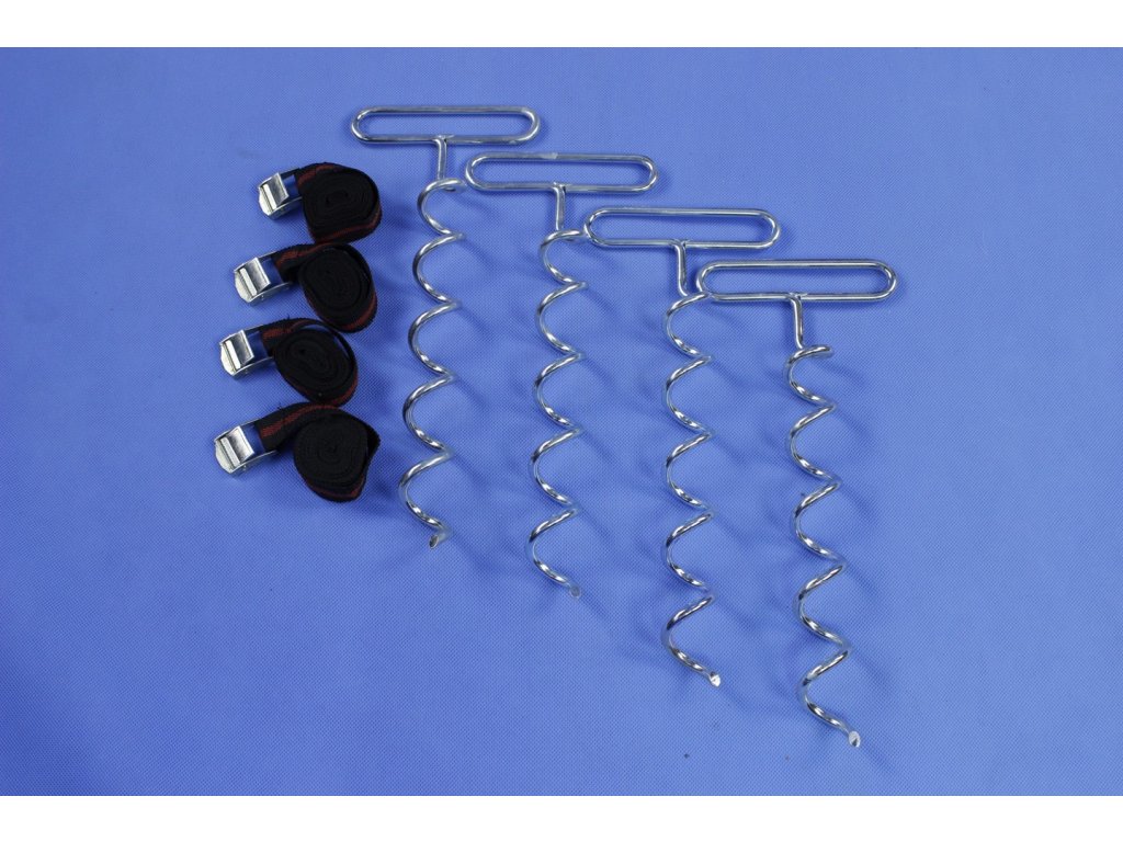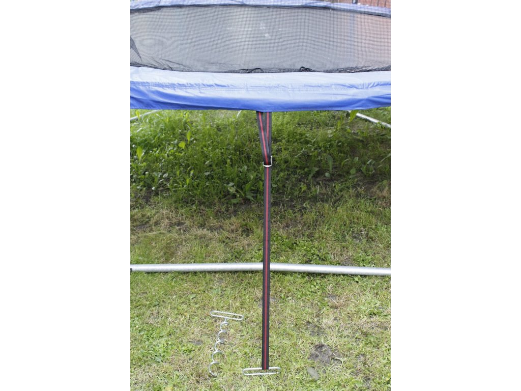 • uniwersalny zestaw pasuje do trampolin ogrodowych (spiralne kotwy gruntowe do wkręcania w murawę)